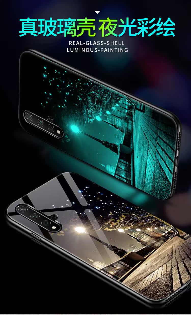 華為nova5pro手機殼nove 5夜光玻璃套note5por硅膠novo全包防摔nowa個性nava創意n0va男女款TL薄硬殼SEA-AL00