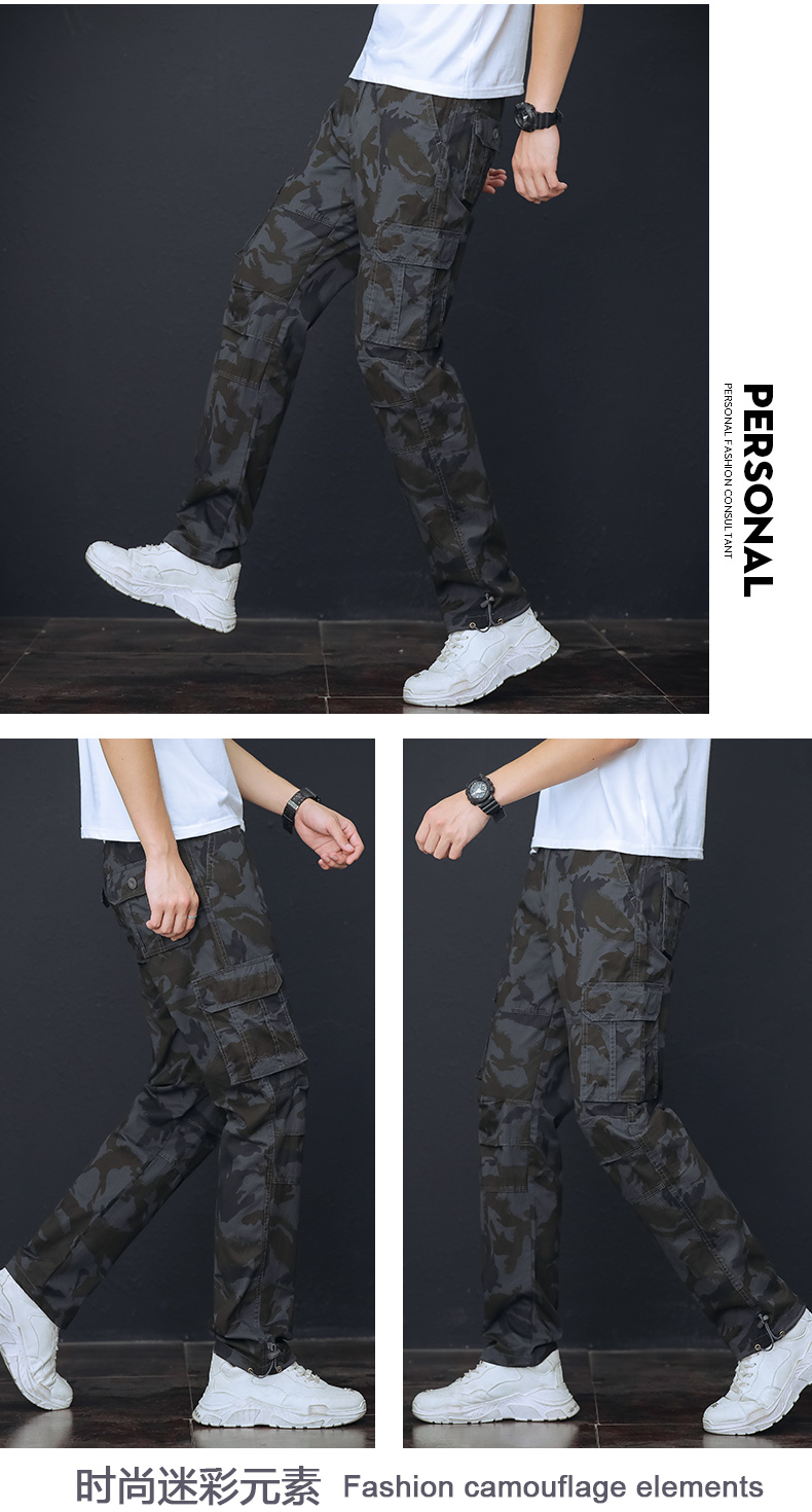 秋季工裝褲男款直筒加絨休閑褲子男生寬松大碼迷彩純棉褲長褲潮牌