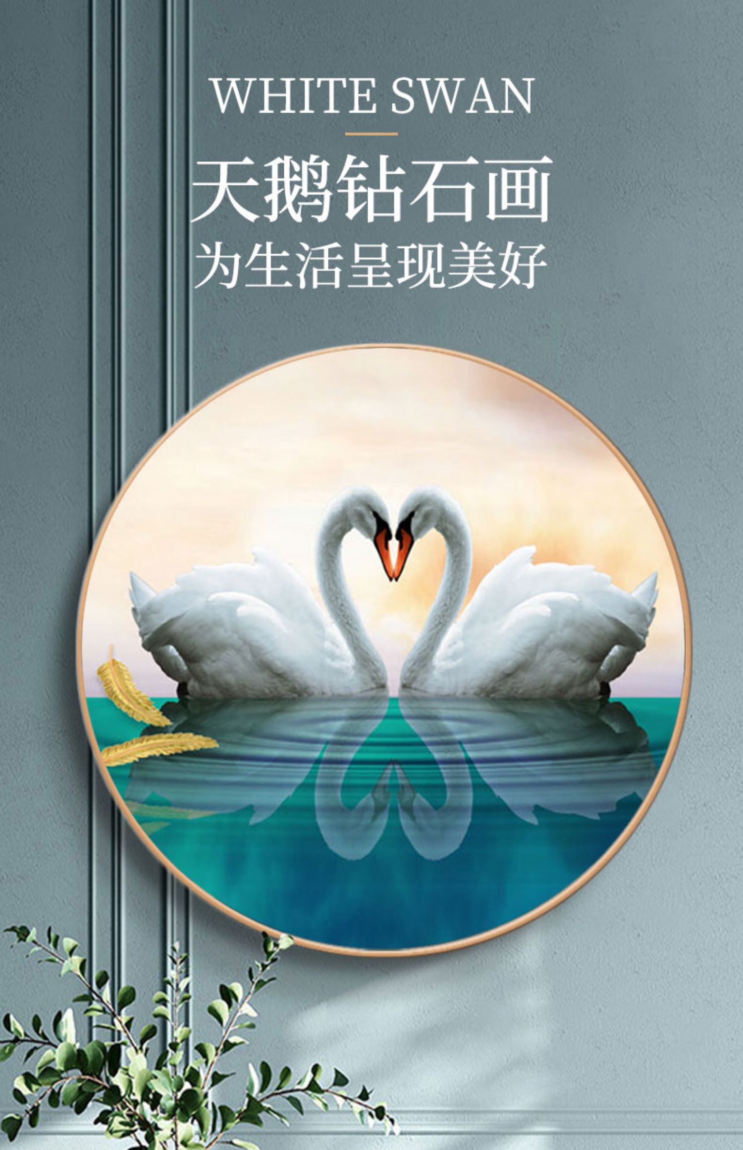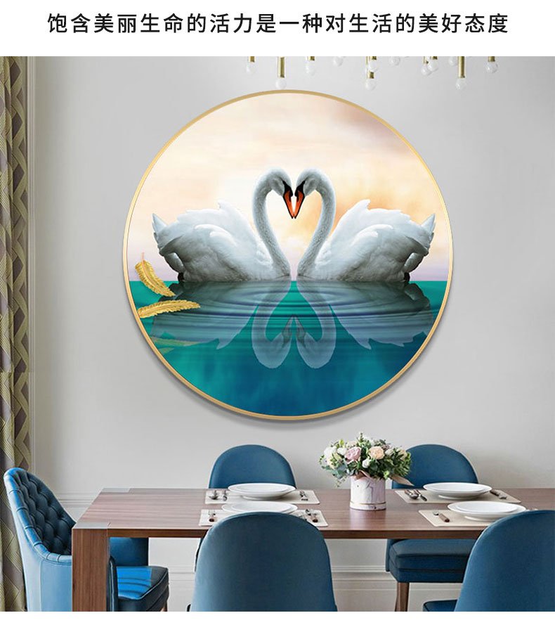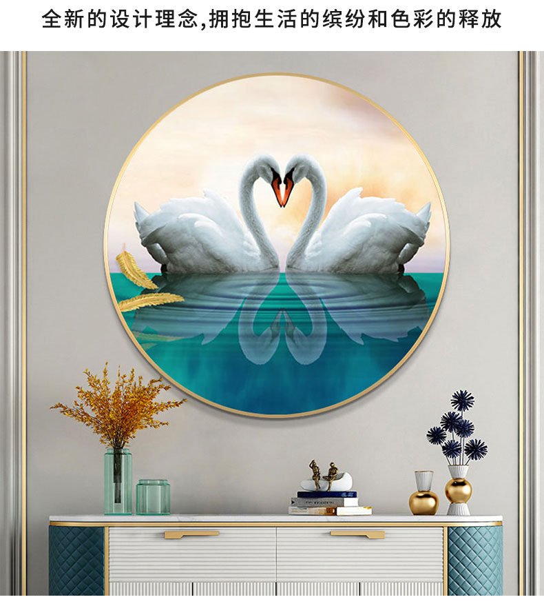 2023新款5d鉆石畫滿鉆簡約現代天鵝餐廳十字繡鉆石繡新品客廳圓形