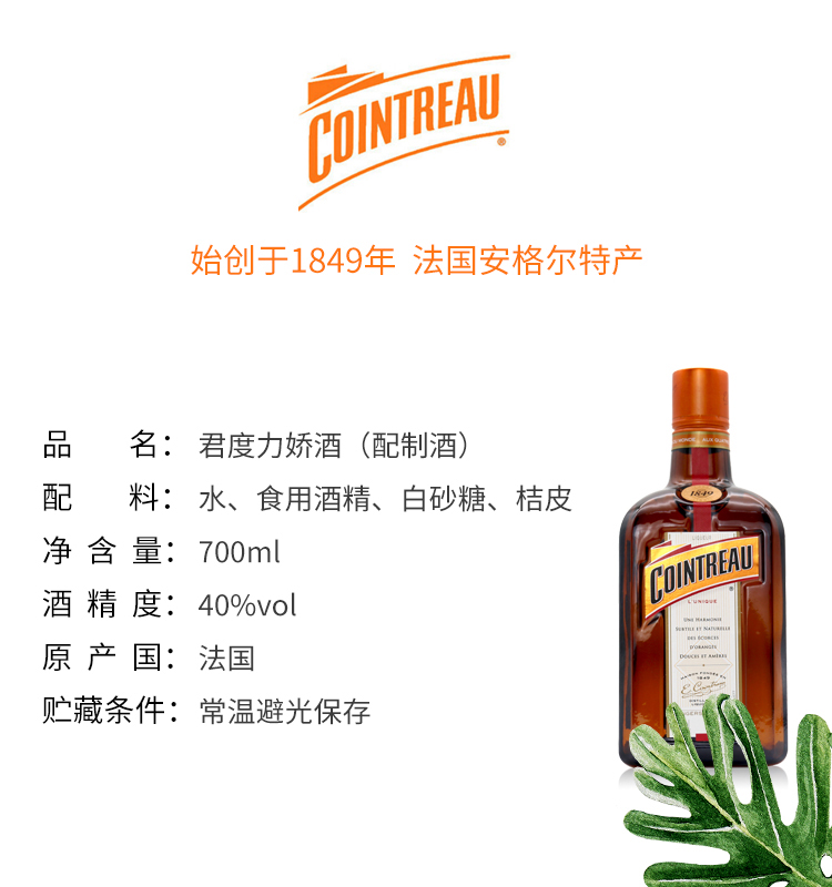 君度Cointreau 力嬌酒法國原裝進口洋酒香橙味甜百搭利口基酒烘焙