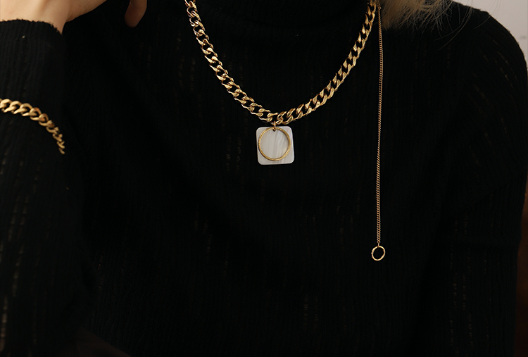 冷淡風項鏈女ins嘻哈古巴鏈ifashion頸鏈幾何方形吊墜流蘇鎖骨鏈