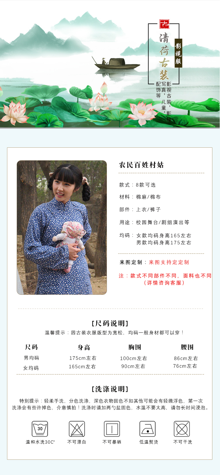 影視古裝農民裝百姓村姑棉麻古裝男民國風古裝群演舞臺話劇演出服