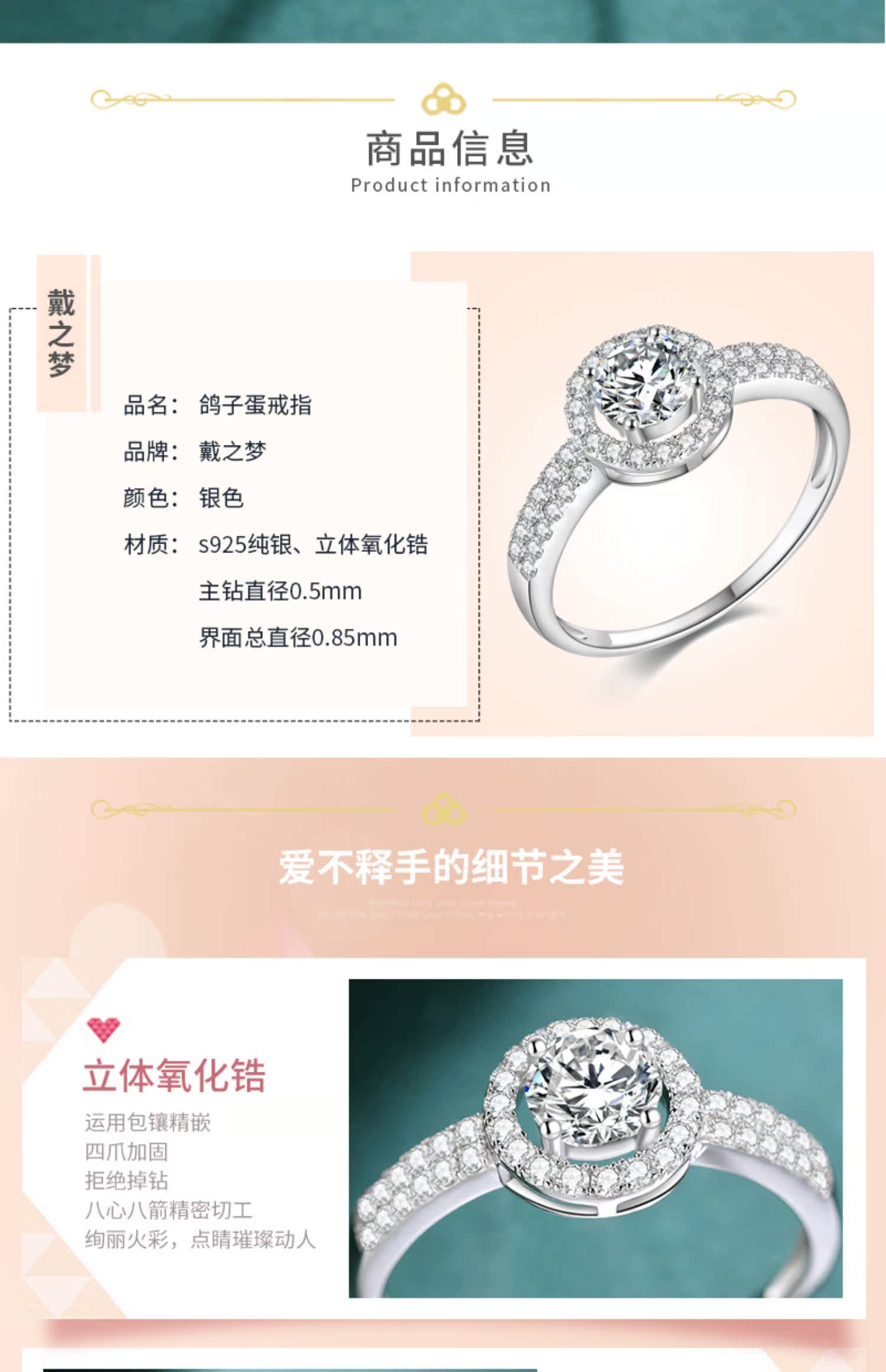 小鉆50分925純銀正品求婚鉆戒指