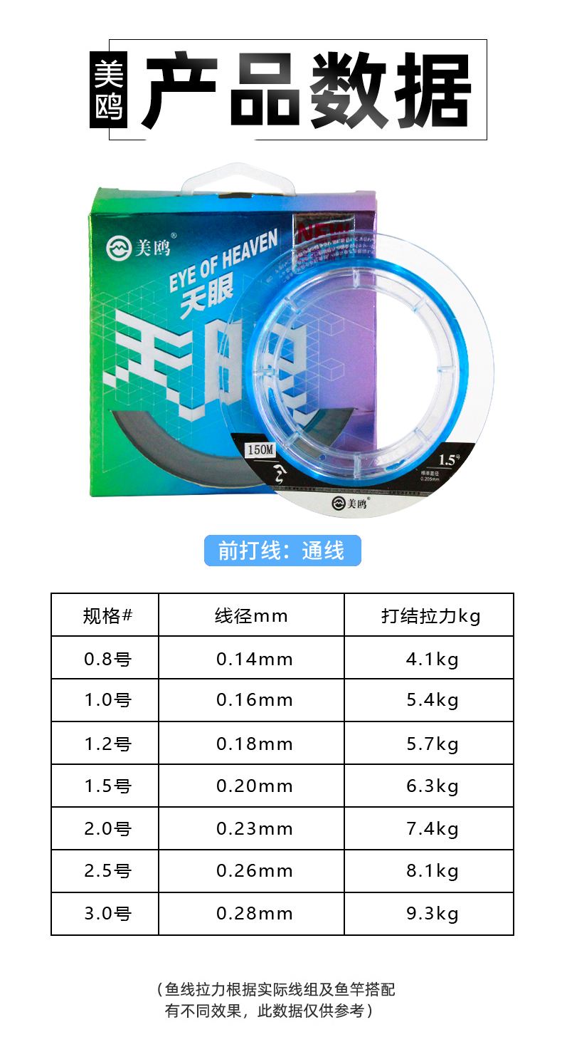 美鷗 天眼 谷麥前打專用線強拉力耐磨抗卷尼龍線主線子線150m魚線