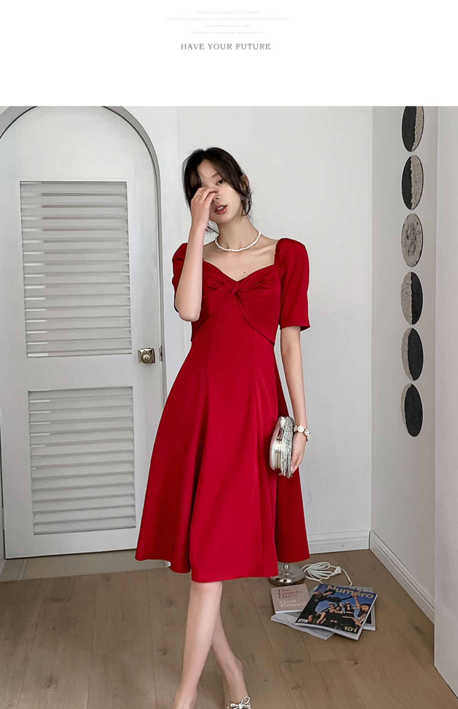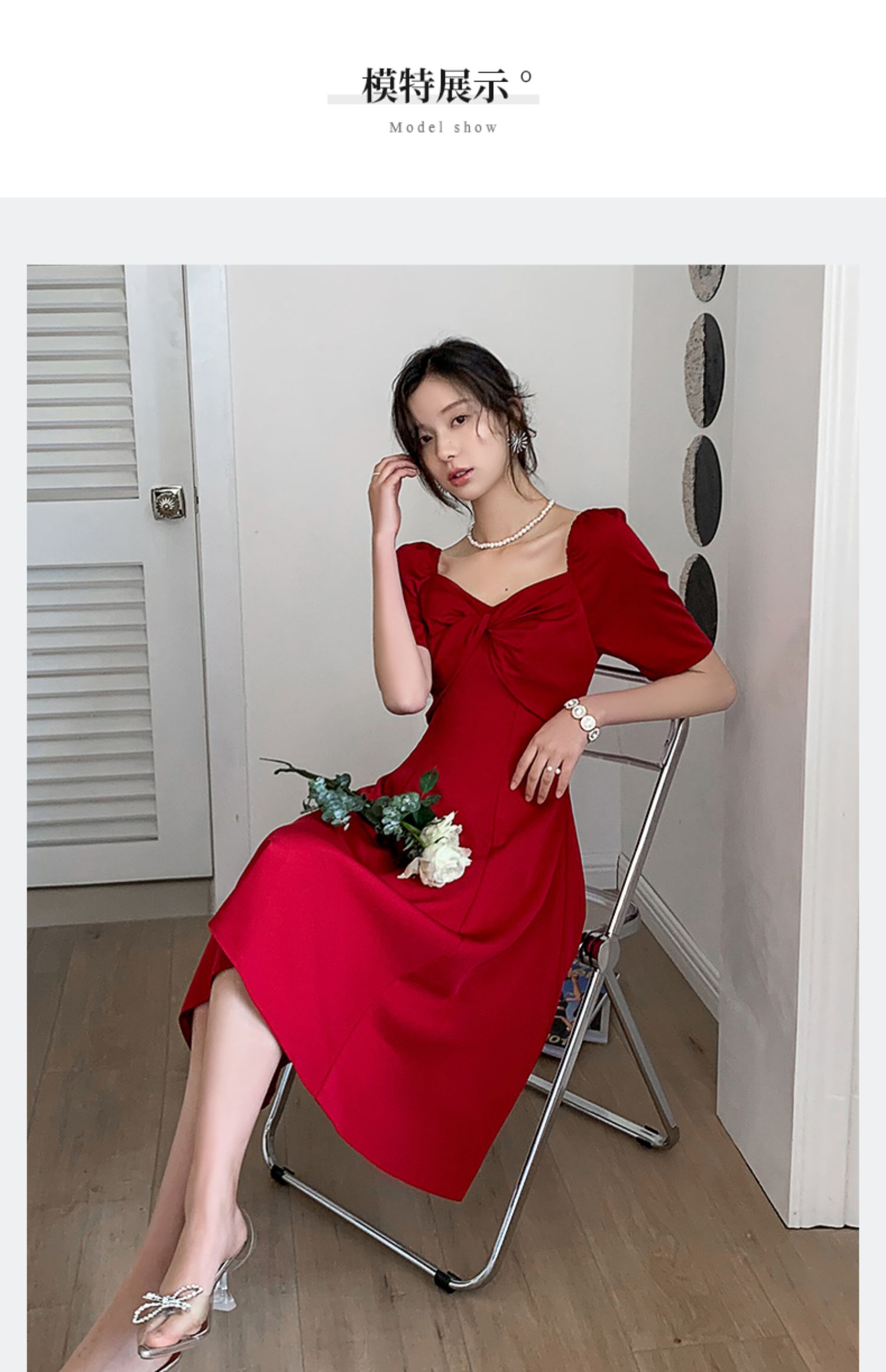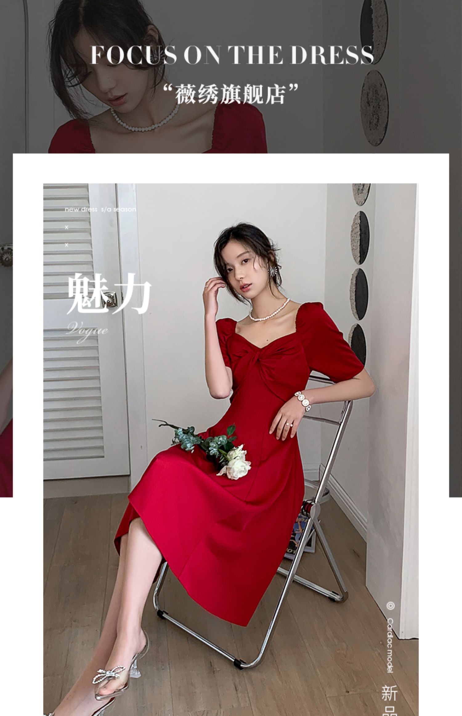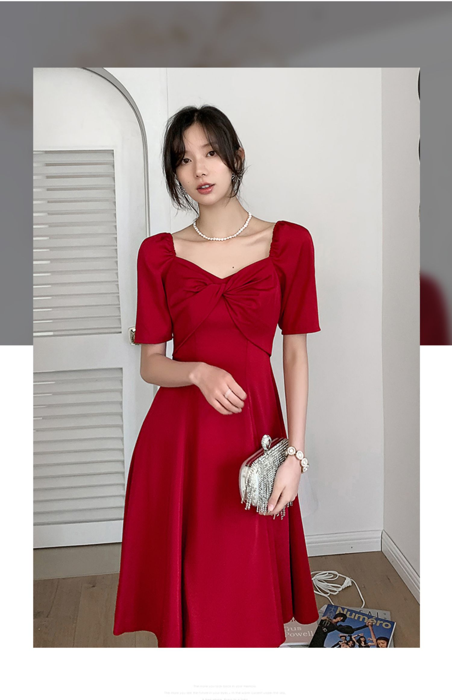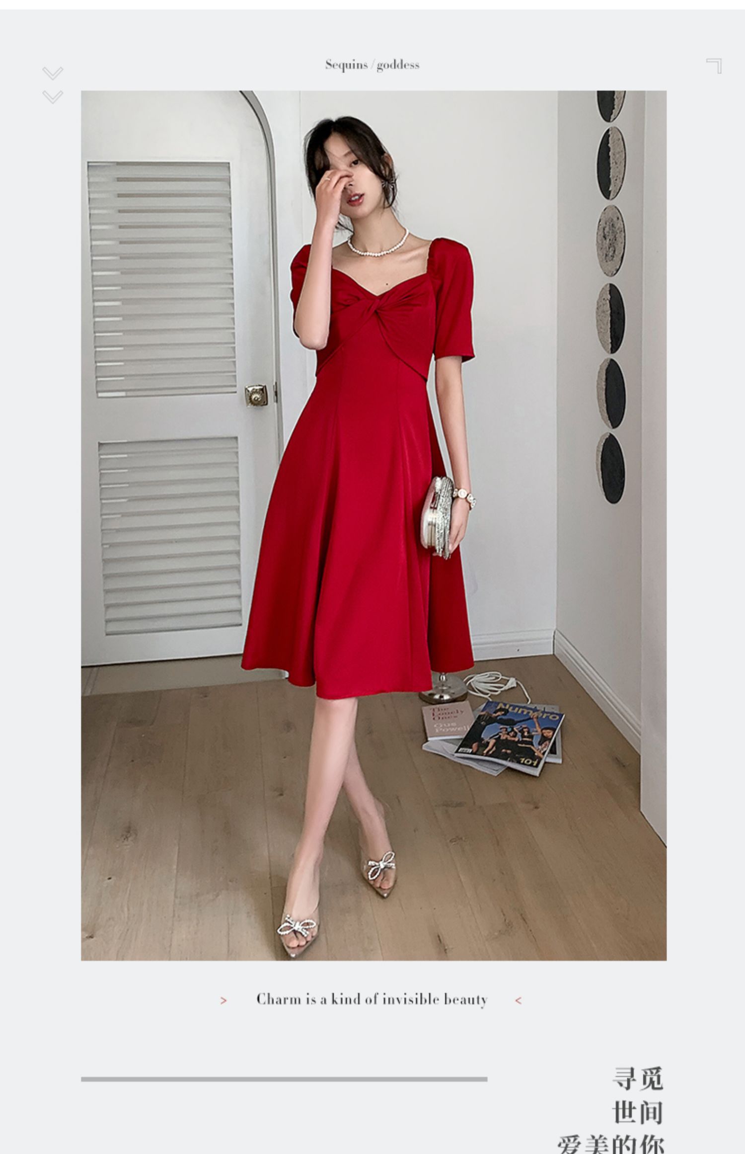 夏季敬酒服新娘結婚便裝訂婚禮服女紅色連衣裙平時可穿小個子中長