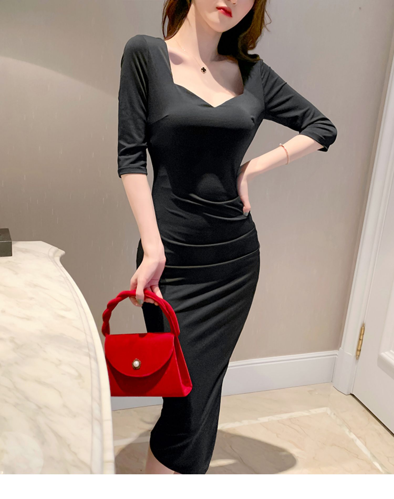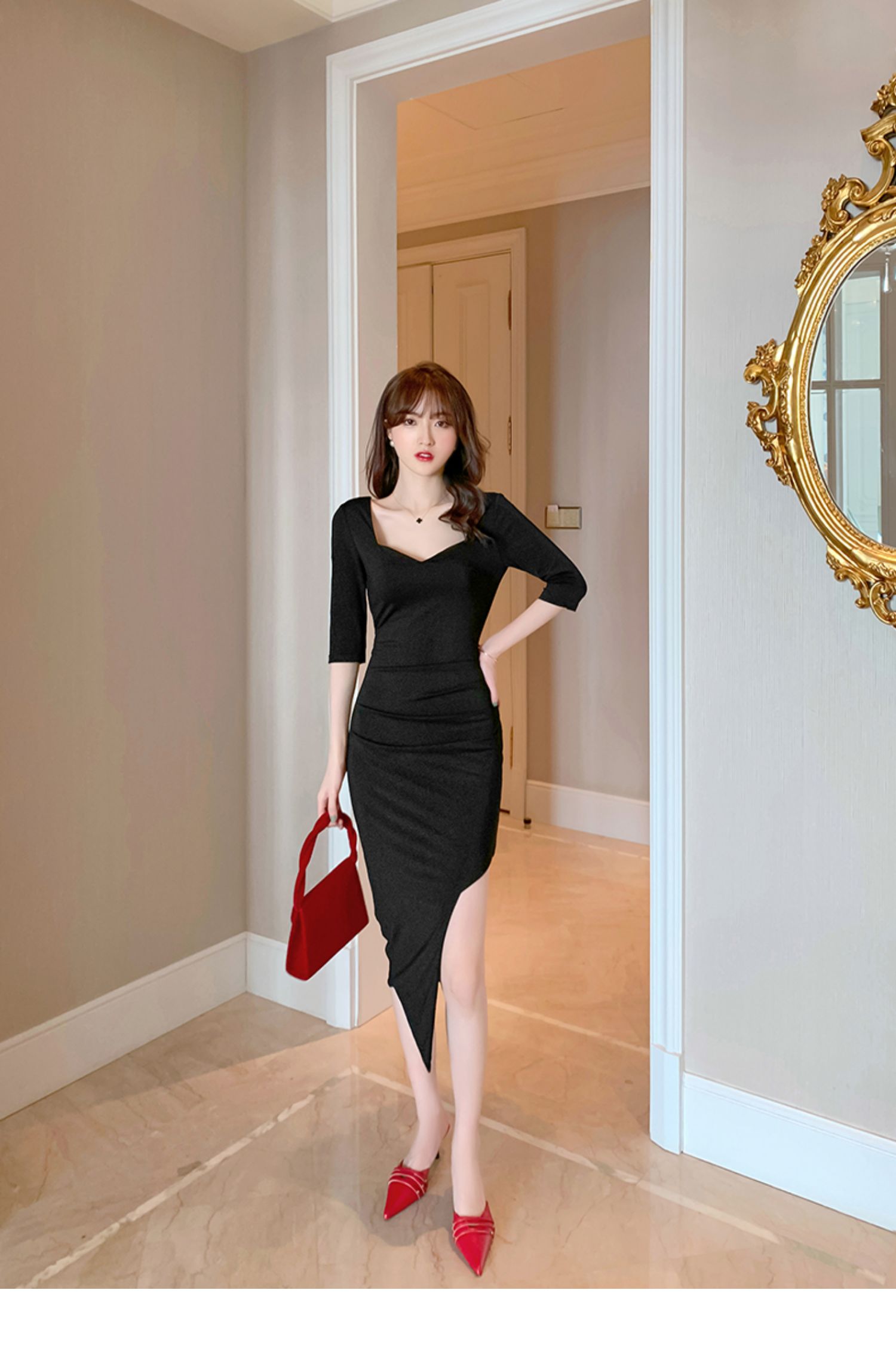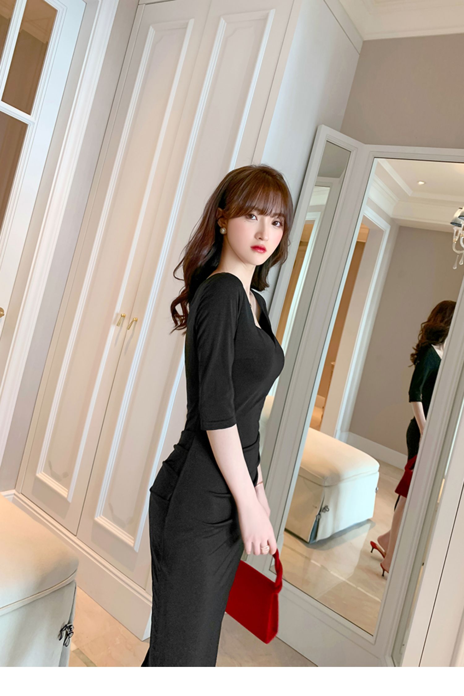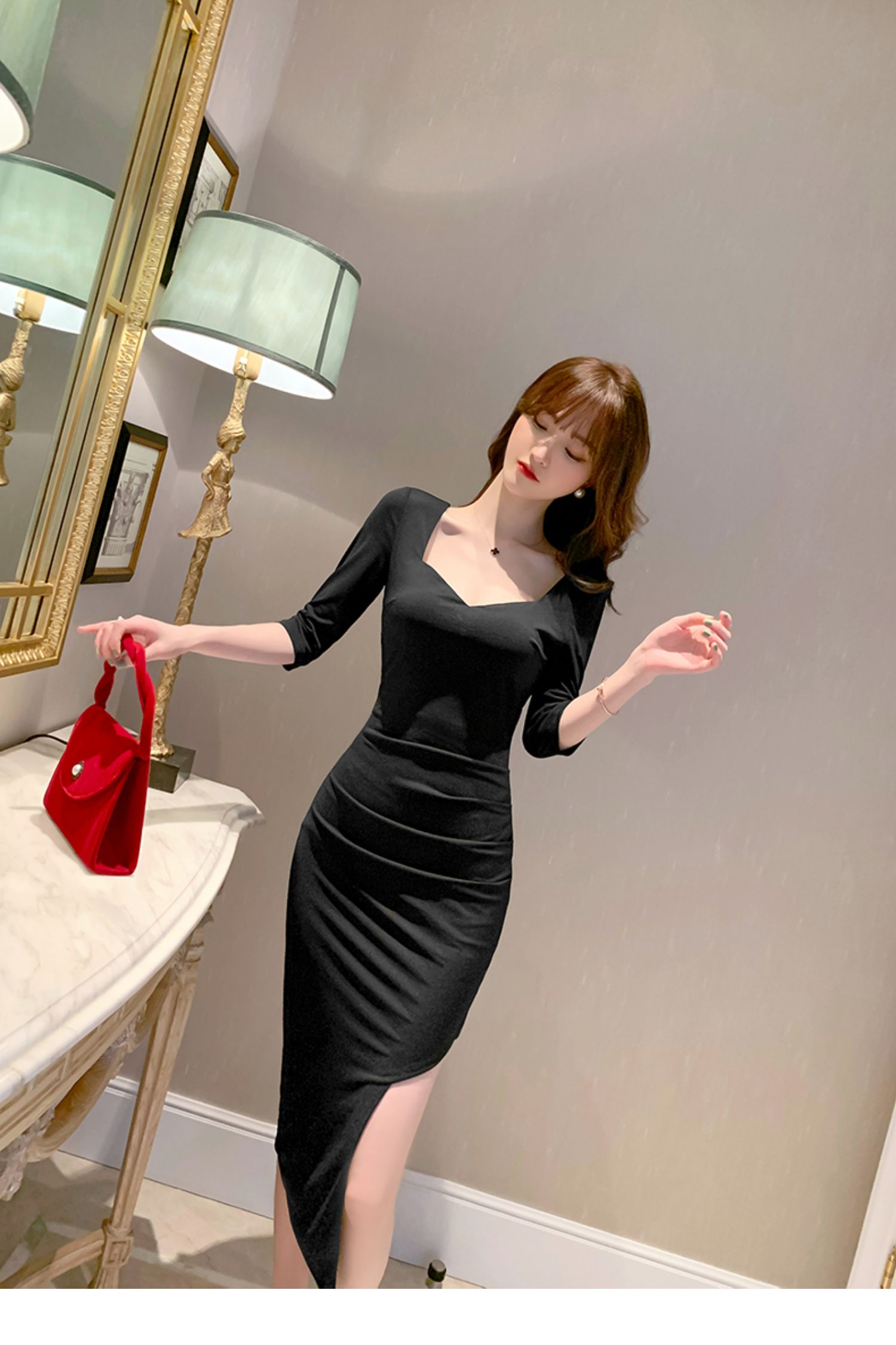 赫本風方領小黑裙禮服女獨特名媛輕奢修身不規則別致設計感連衣裙