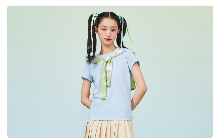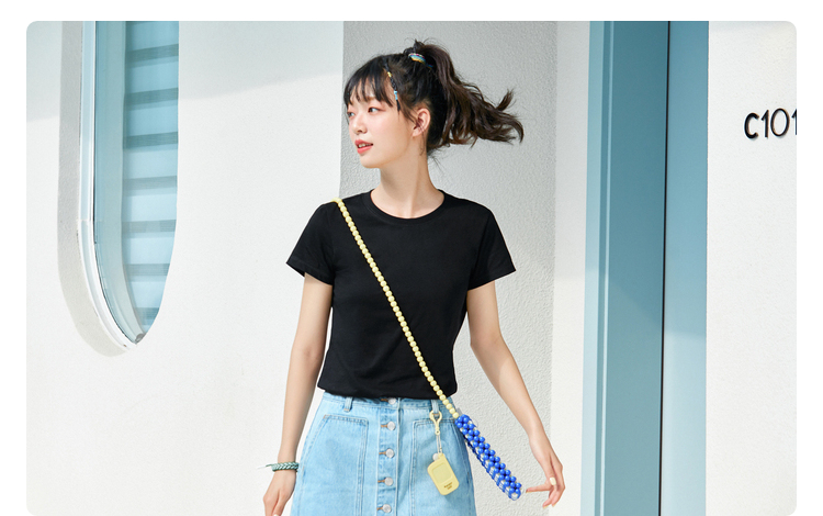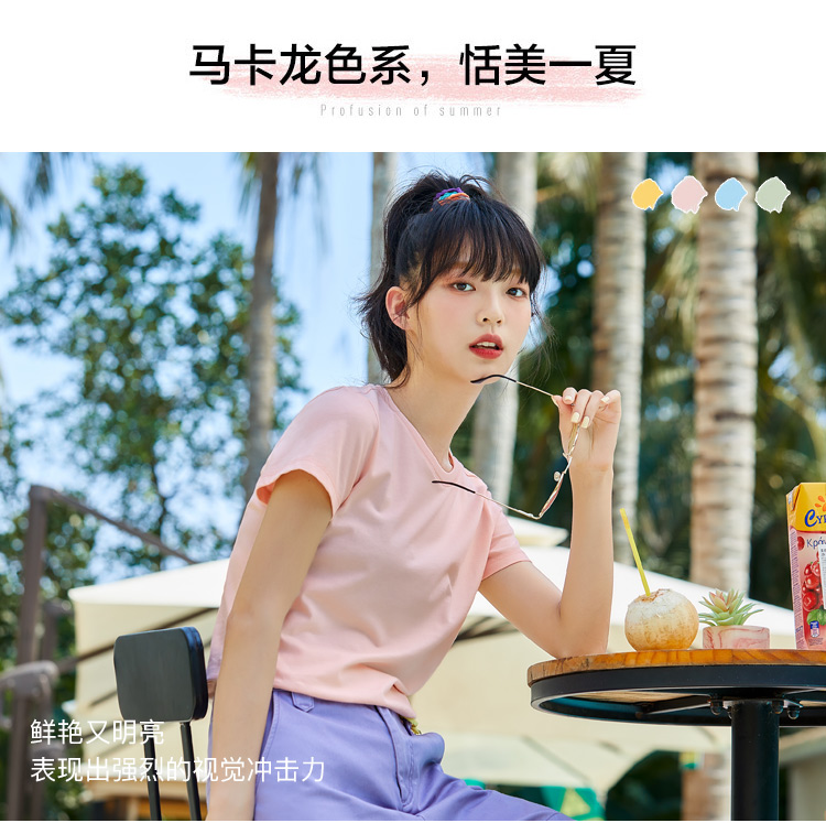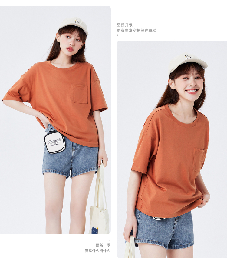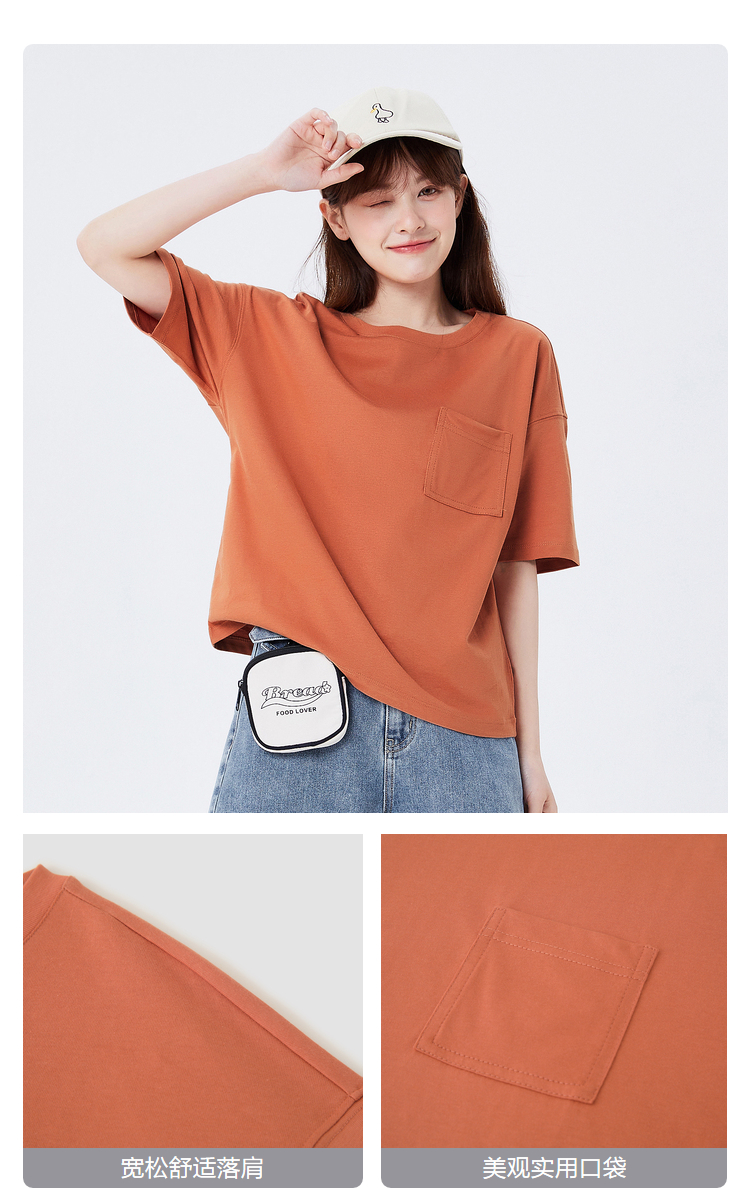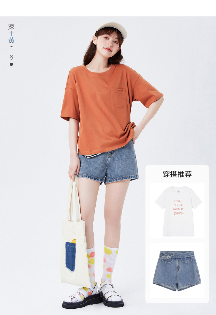 森馬短袖T恤女2023夏季新款小個子寬松純色半袖上衣學生口袋體恤