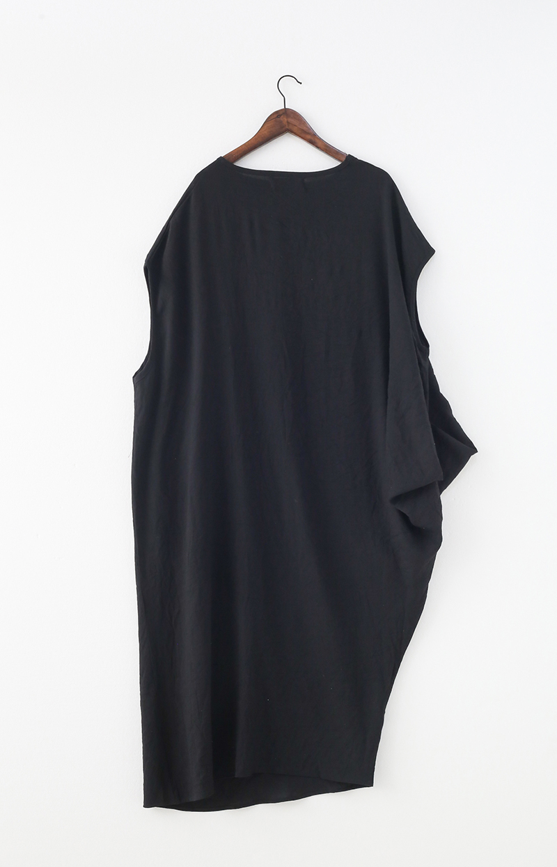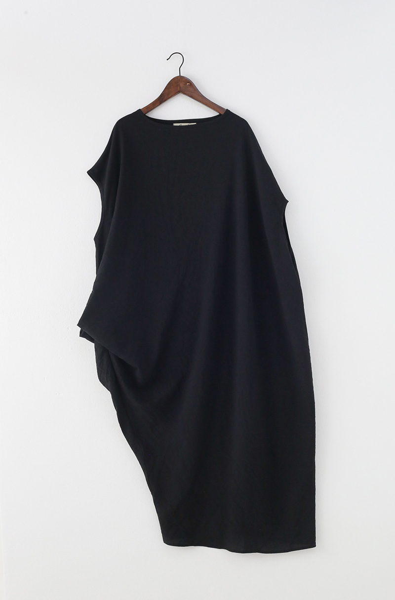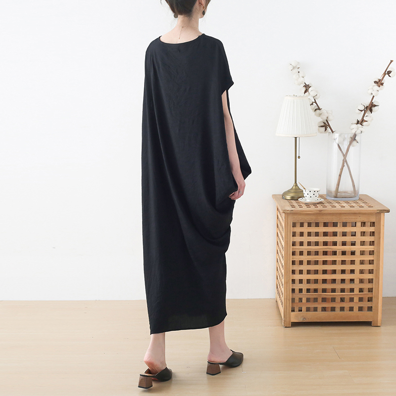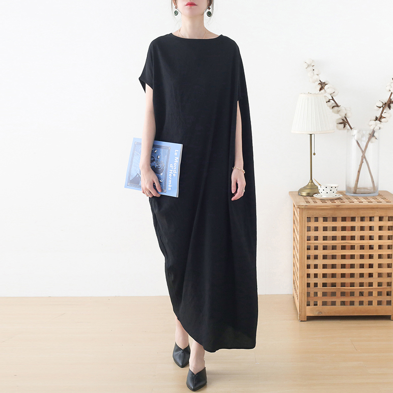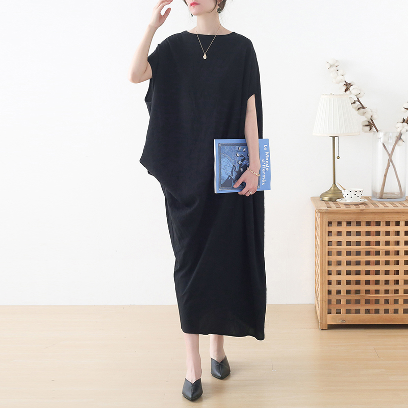 兮原創風設計師風格純色不規則連衣裙大碼寬松蝙蝠袖中長裙23夏款