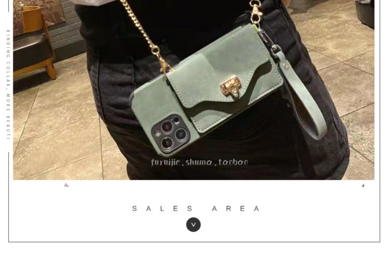 適用于蘋果12斜挎可插卡掛繩手機殼