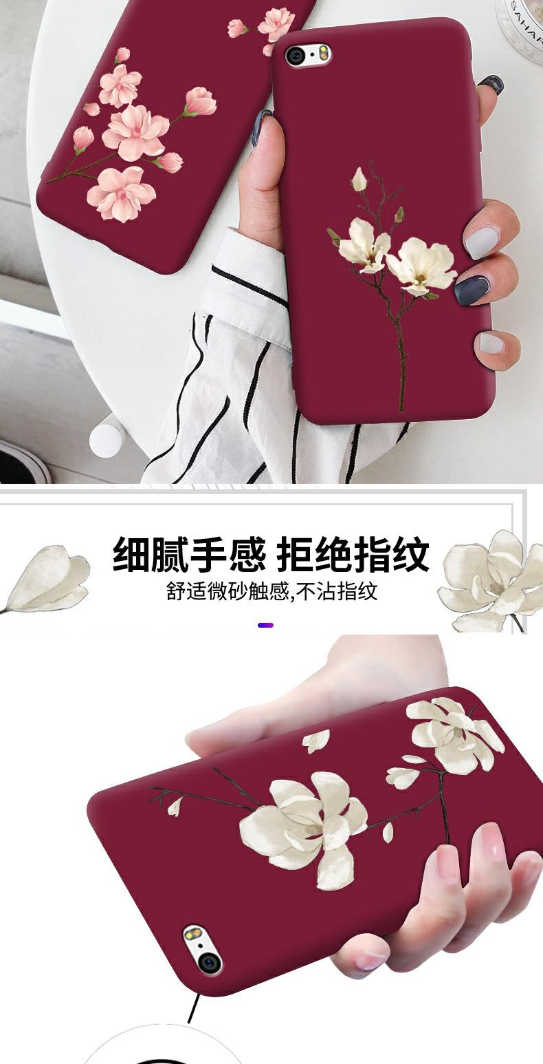 酒紅櫻花適用于蘋果5/5S手機殼女可愛se全包硅膠防摔iphone6硅膠6S軟殼6PLUS手機套7/8網紅新款ins風五es一代