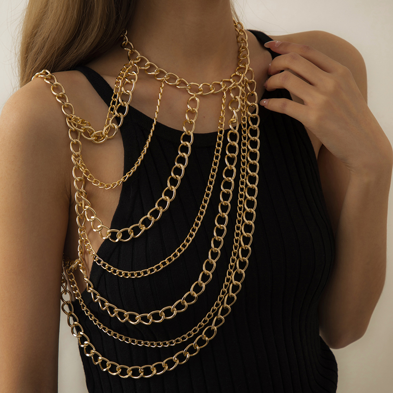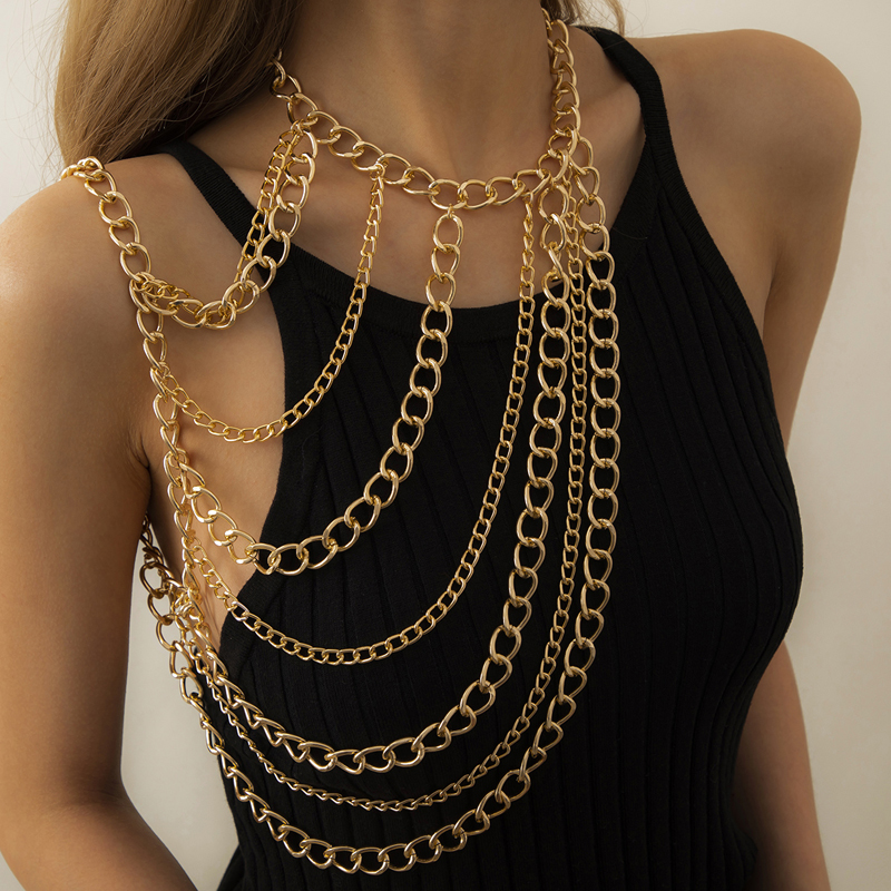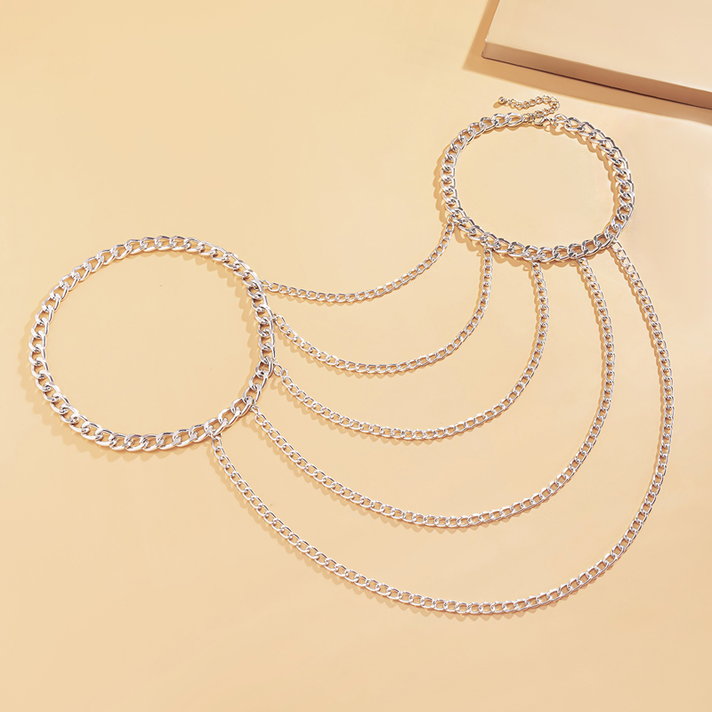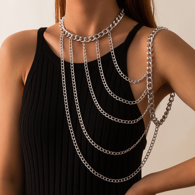 鋁鏈多層身體鏈 歐美性感氣質項鏈肩鏈一體鏈酒吧演唱會舞臺配飾