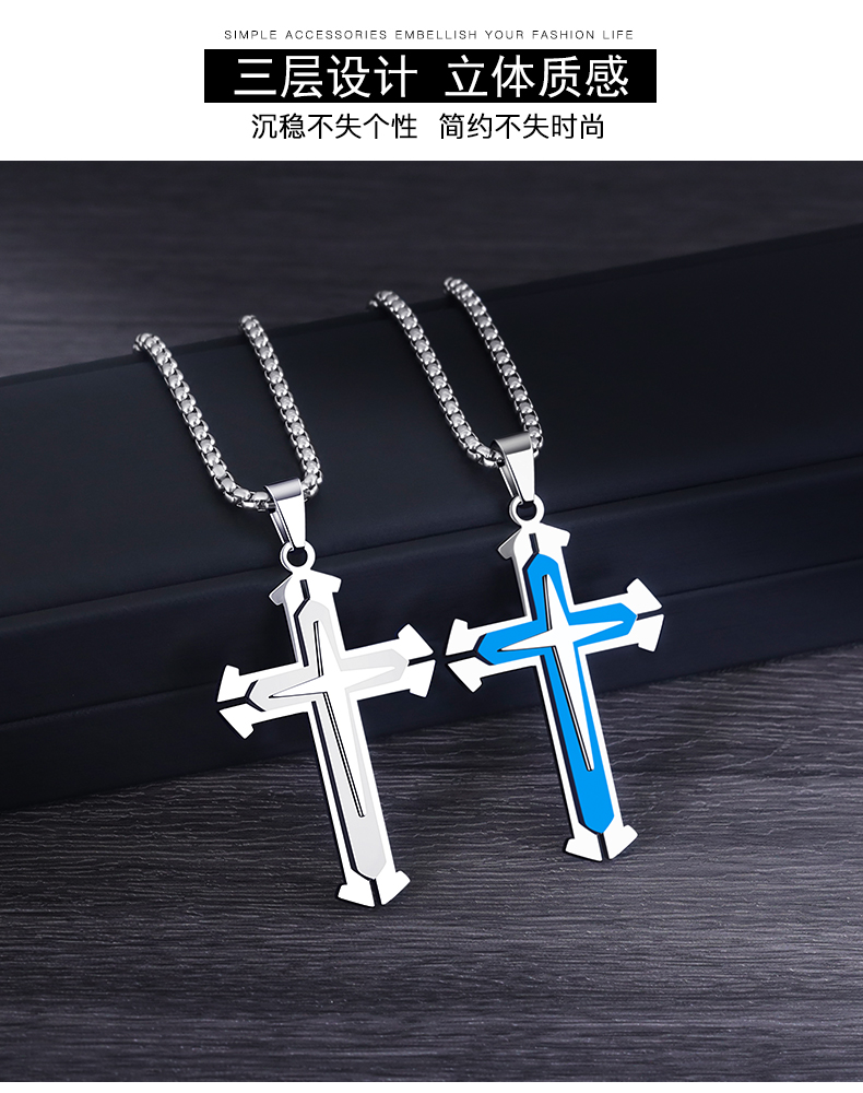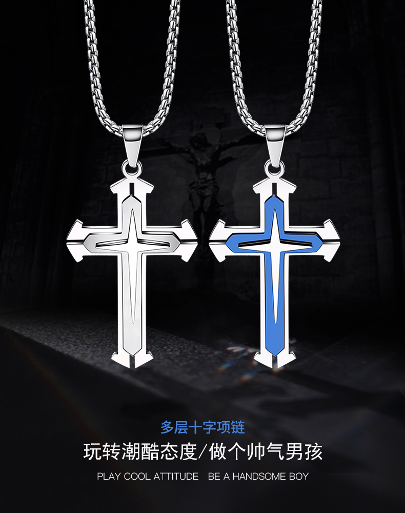 十字架多層鈦鋼男士項鏈潮配飾高級設計感小眾吊墜痞帥輕奢裝飾品
