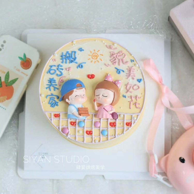 情人節烘焙蛋糕裝飾 賺錢養家男孩貌美如花女孩搬磚情侶玩偶擺件