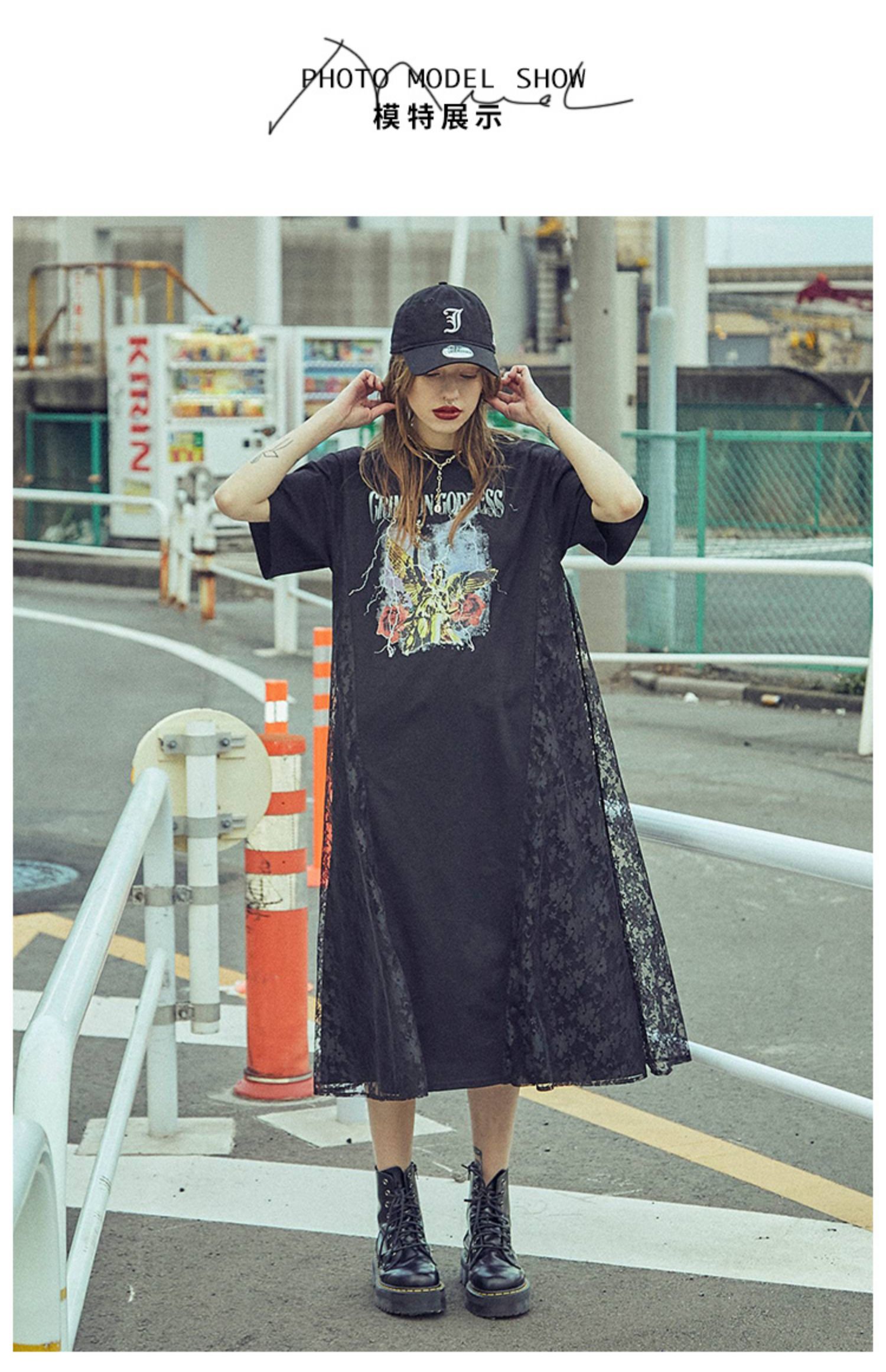 jouetie日系潮牌2023夏季新款蕾絲拼接長裙寬松小眾炸街連衣裙
