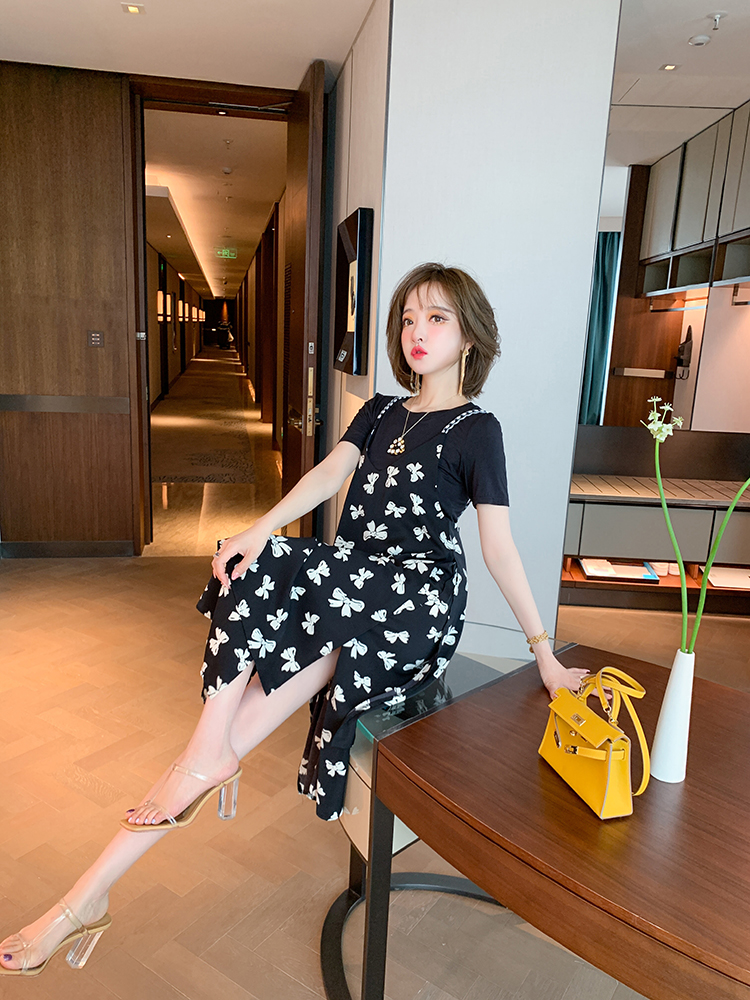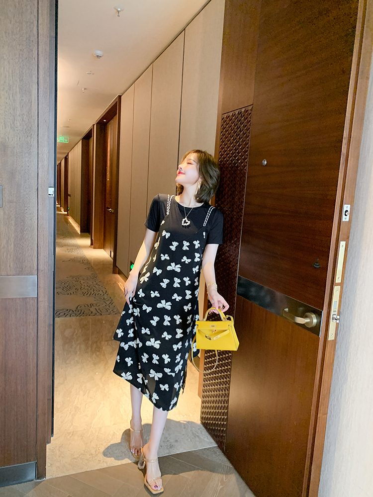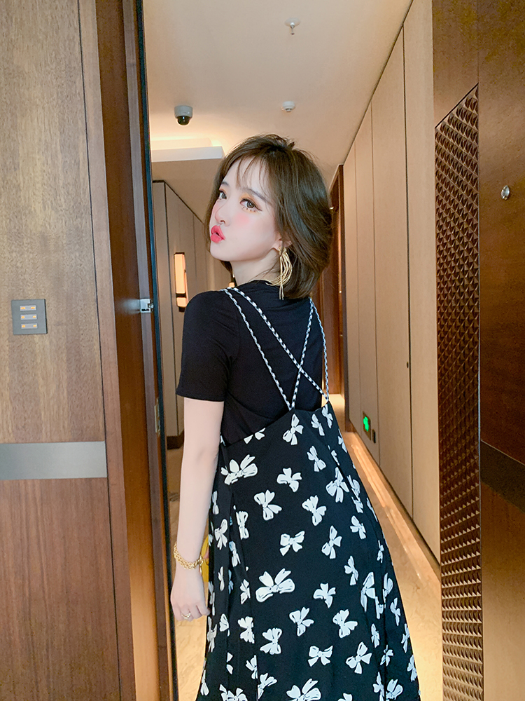 裙身專門定zhi的蝴蝶結印花來裝飾細節,