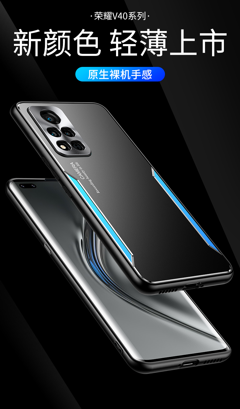 適用榮耀v40輕奢版玻璃金屬手機殼