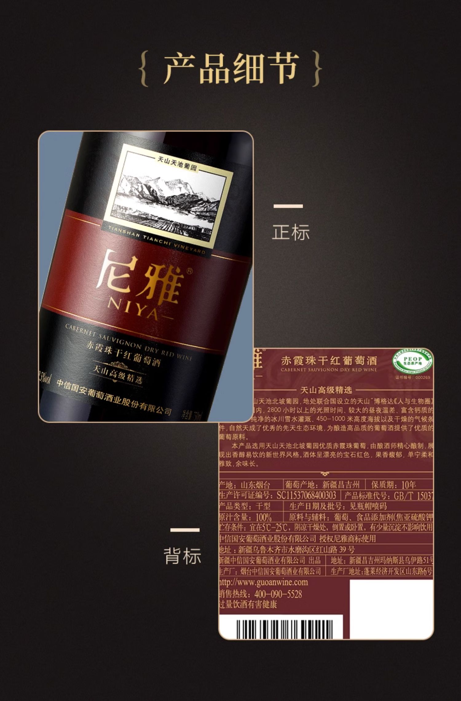 尼雅天山特級精選赤霞珠新疆干紅
