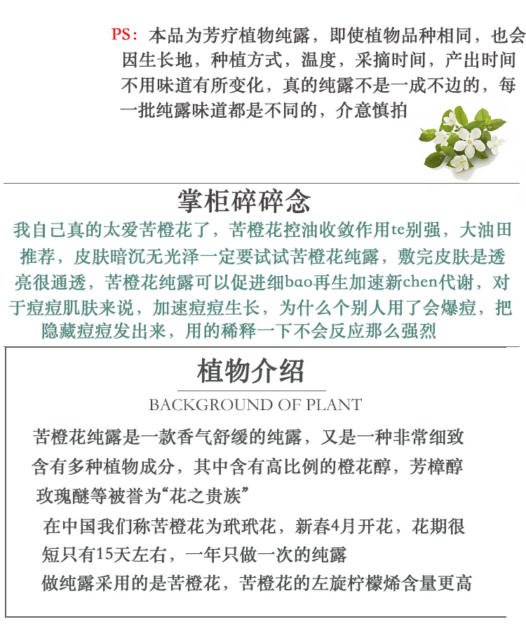 【森花工坊】2023年新苦橙花純露白皙嫩膚收縮毛孔改善暗黃500ml
