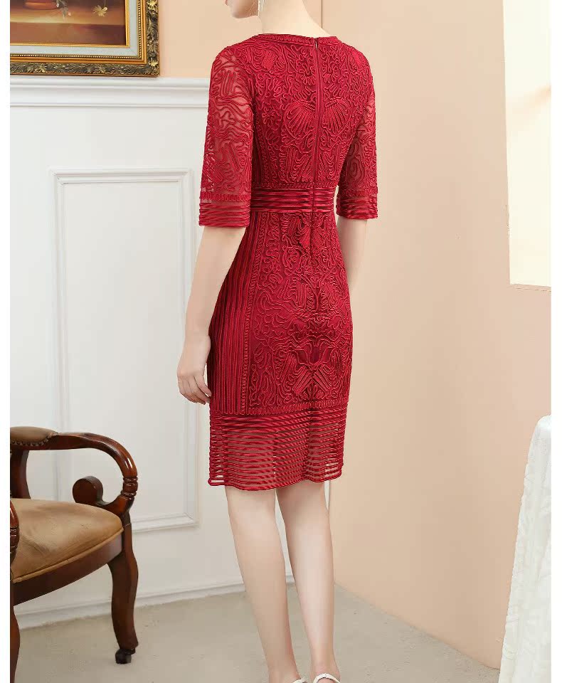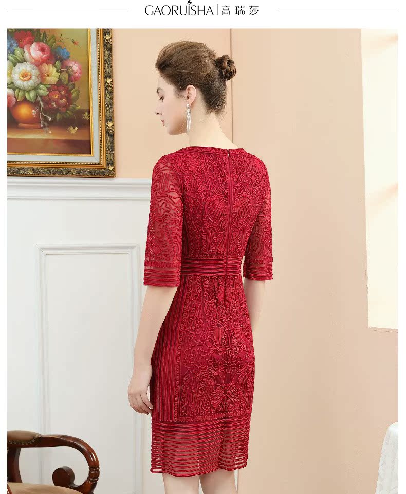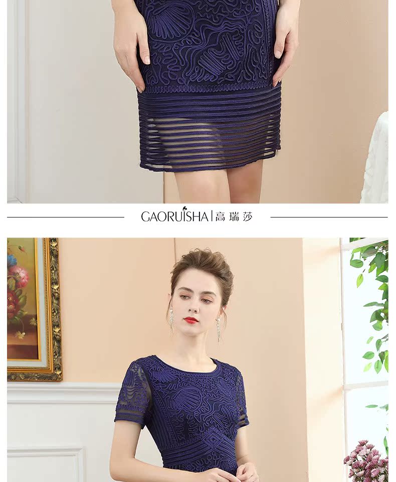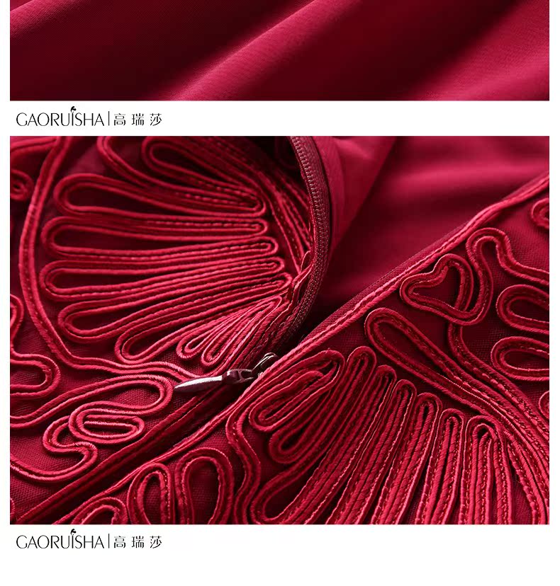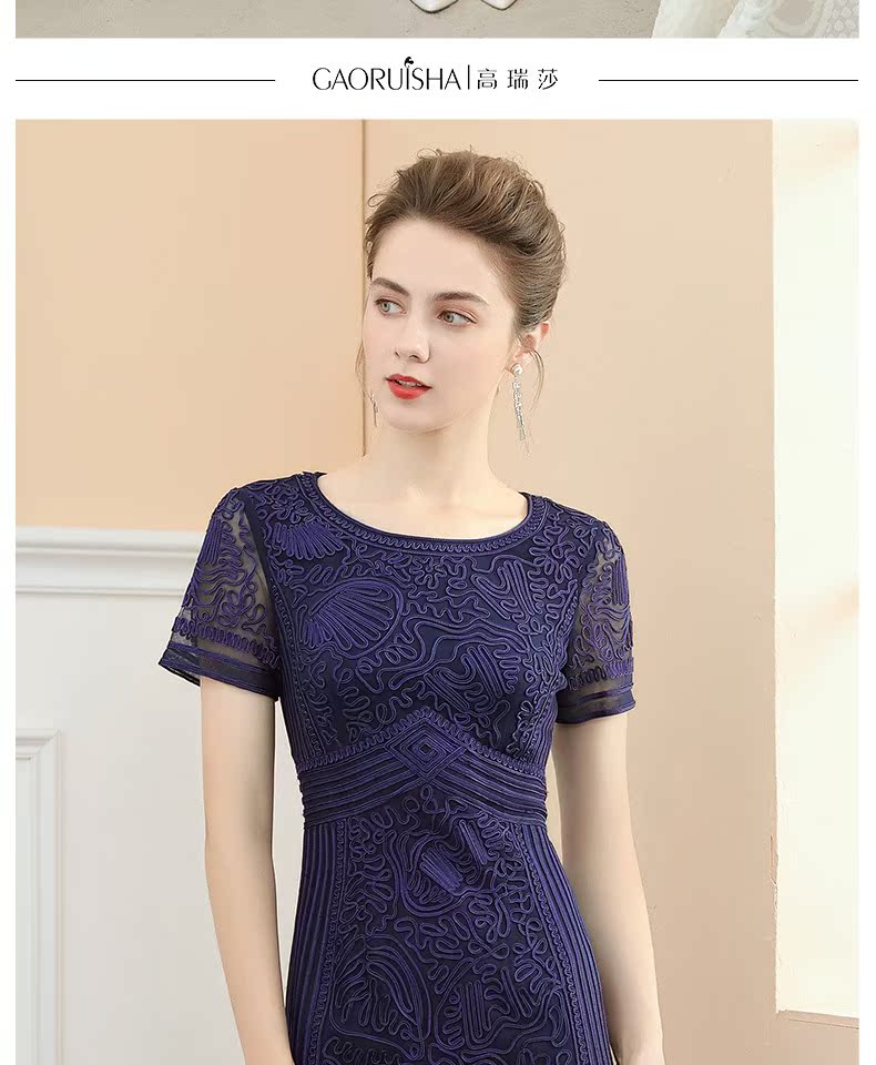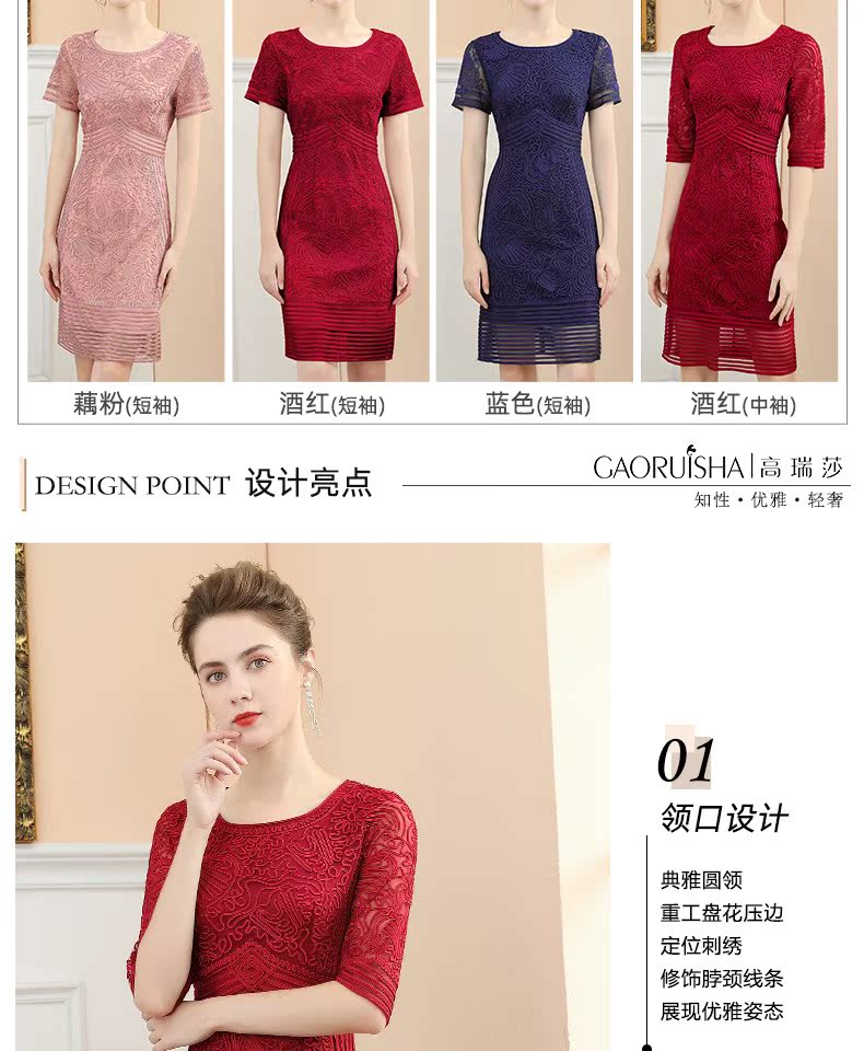 高瑞莎高端刺繡婚宴裝連衣裙秋季年輕喜婆婆氣質修身收腰優雅顯瘦