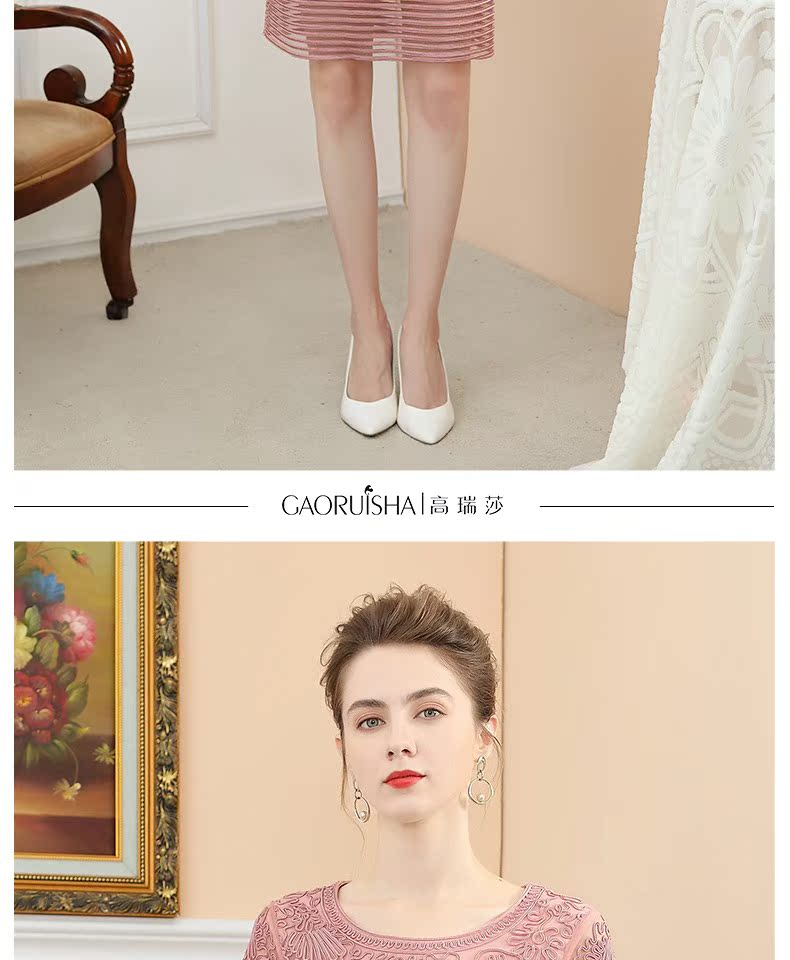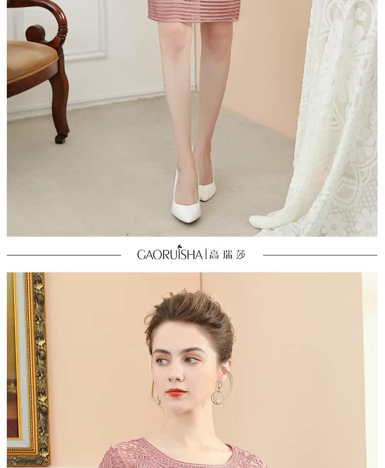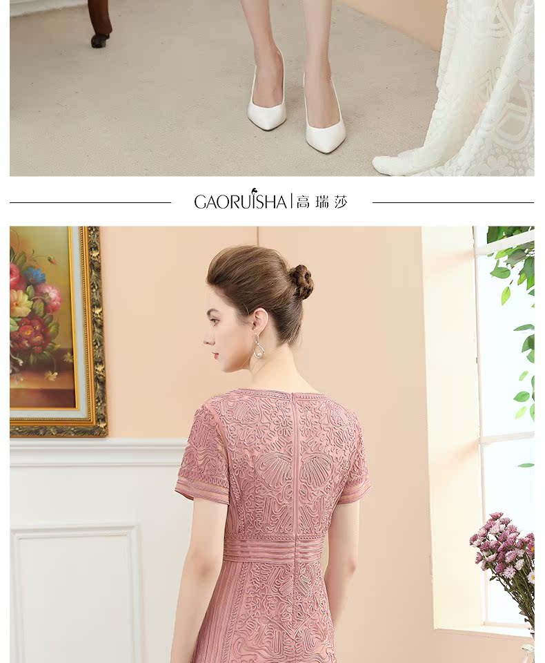 高瑞莎洋氣粉色媽媽裝禮服連衣裙