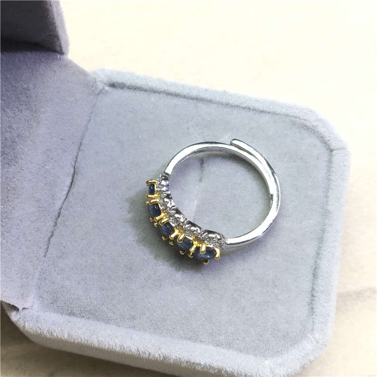 藍寶石排鉆18k鍍金s925女純銀戒指