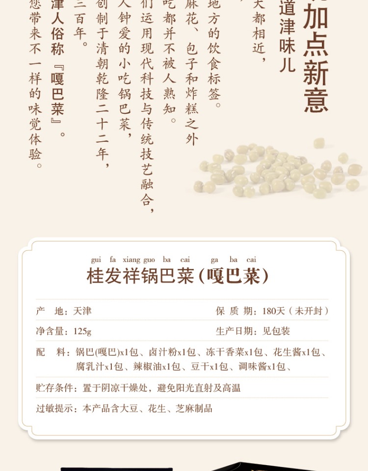 天津特產桂發祥嘎巴菜125g方便速食品特色小吃早點即食綠豆鍋巴菜