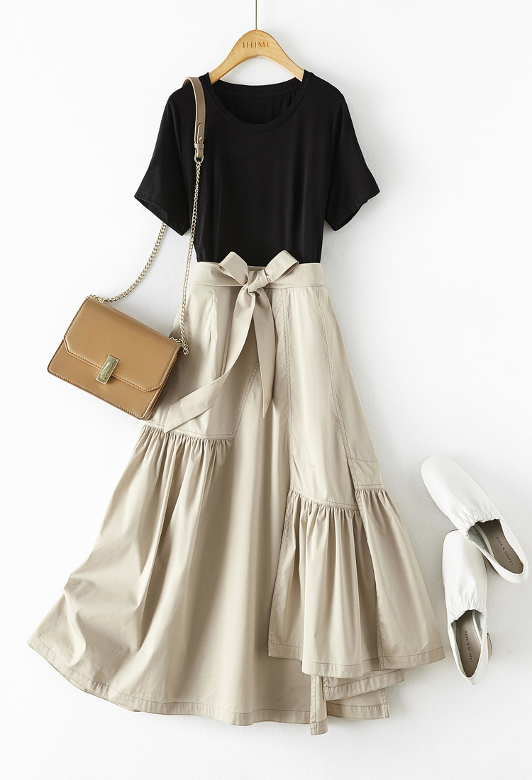 IHIMI海謐休閑設計感T恤裙子2023夏季新款女簡約純色顯瘦連衣裙
