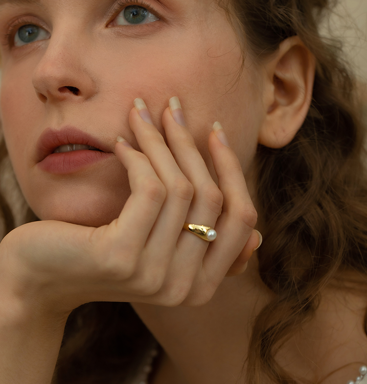 AIR-HORIZON珍珠戒指冷淡風高級感指環女簡約復古小眾素圈食指戒