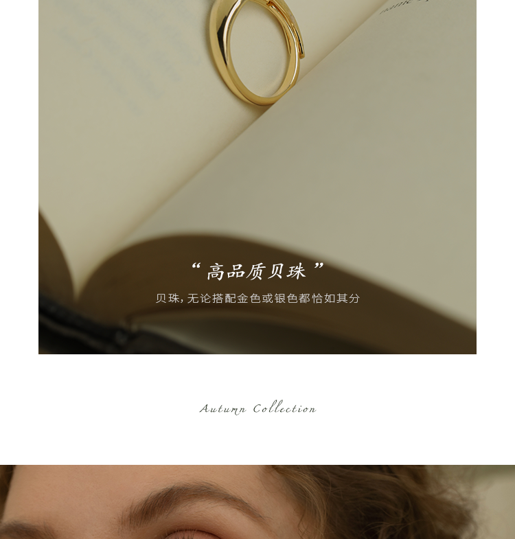 AIR-HORIZON珍珠戒指女鍍18K金小眾設計高級感氣質通勤食指開口戒