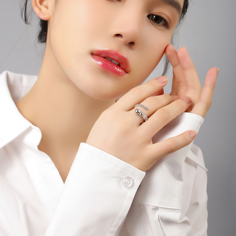 abyb charming 旋轉雪球戒指女銀色開口可調節食指指環原創設計感