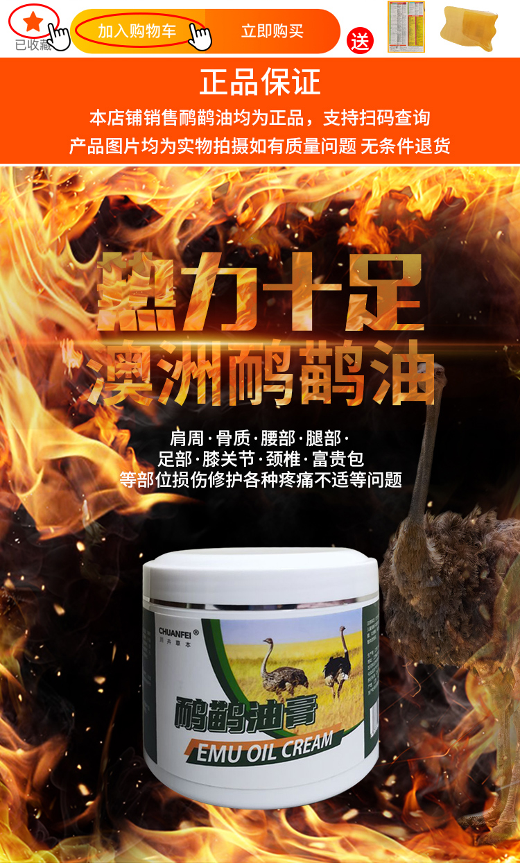 澳大利亞鴯鹋油正品澳洲原裝按摩膏排濕寒損傷舒緩富貴包鴕鳥油