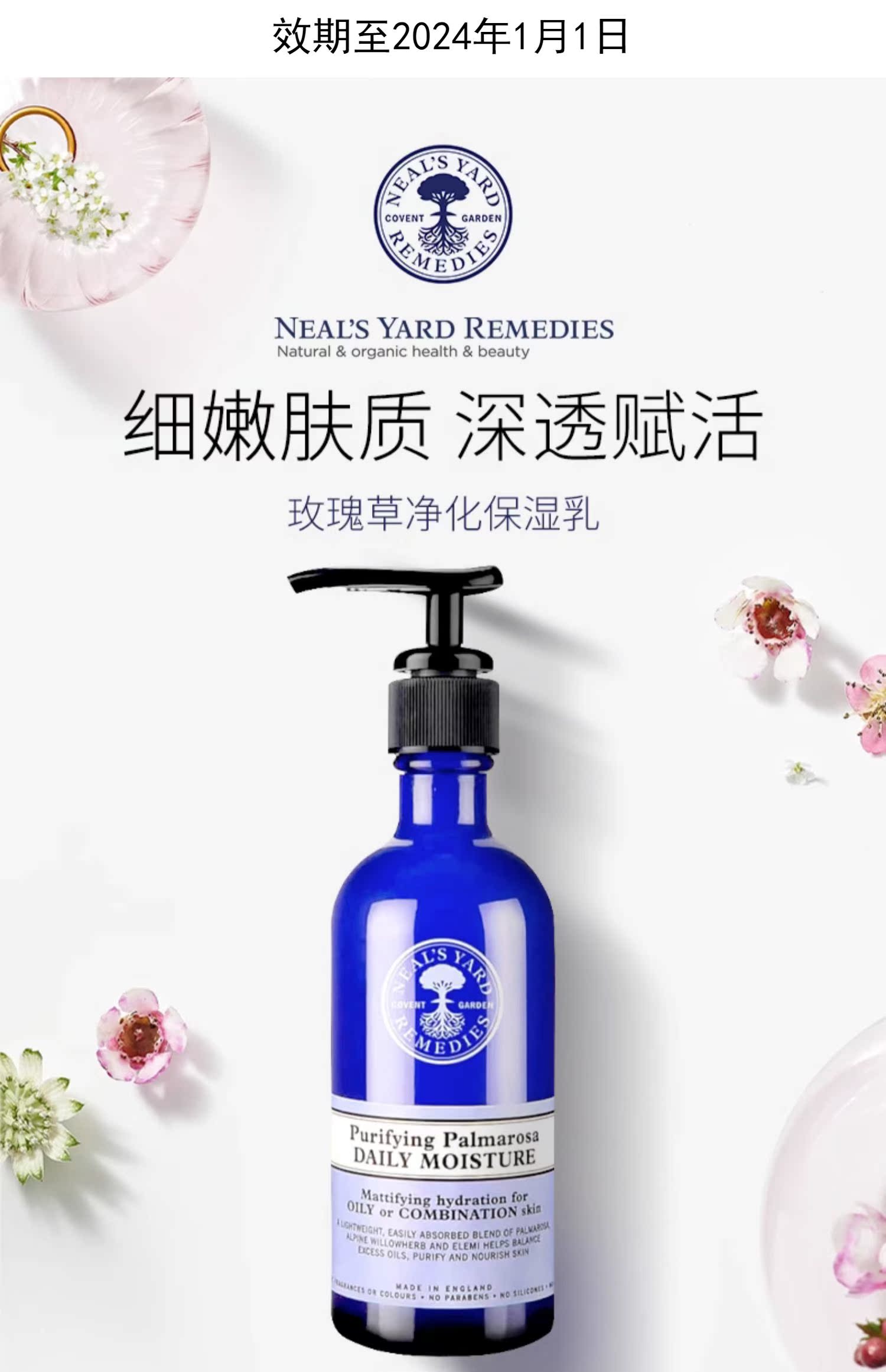 【會員專享5折】英國NYR玫瑰草凈化保濕乳100ml清爽補水乳液