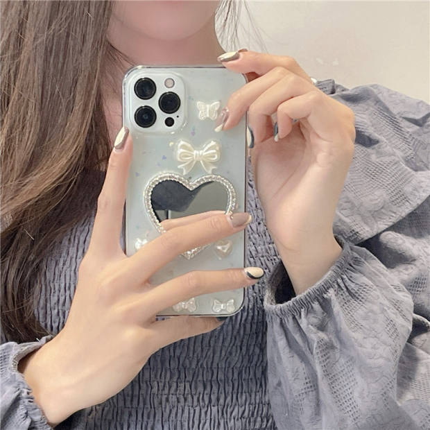 鐳射蝴蝶愛心鏡子適用蘋果14手機殼