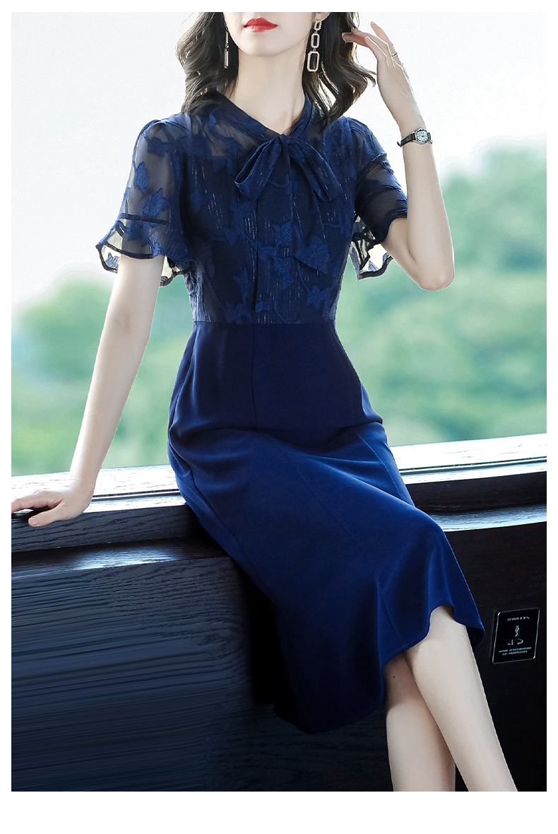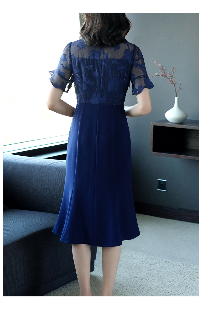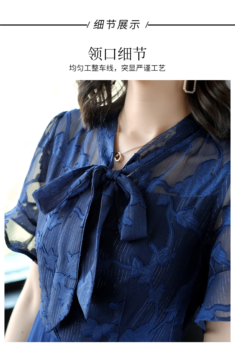 名媛氣質連衣裙夏女神范過膝2023新款雪紡中長款顯瘦短袖淑女裙子