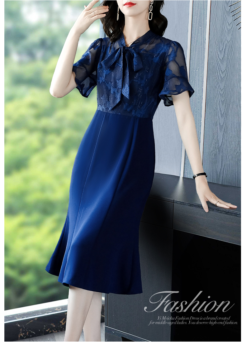 藍色8分袖連衣裙女2023年秋冬新款高端大牌名媛氣質宴會禮服長款
