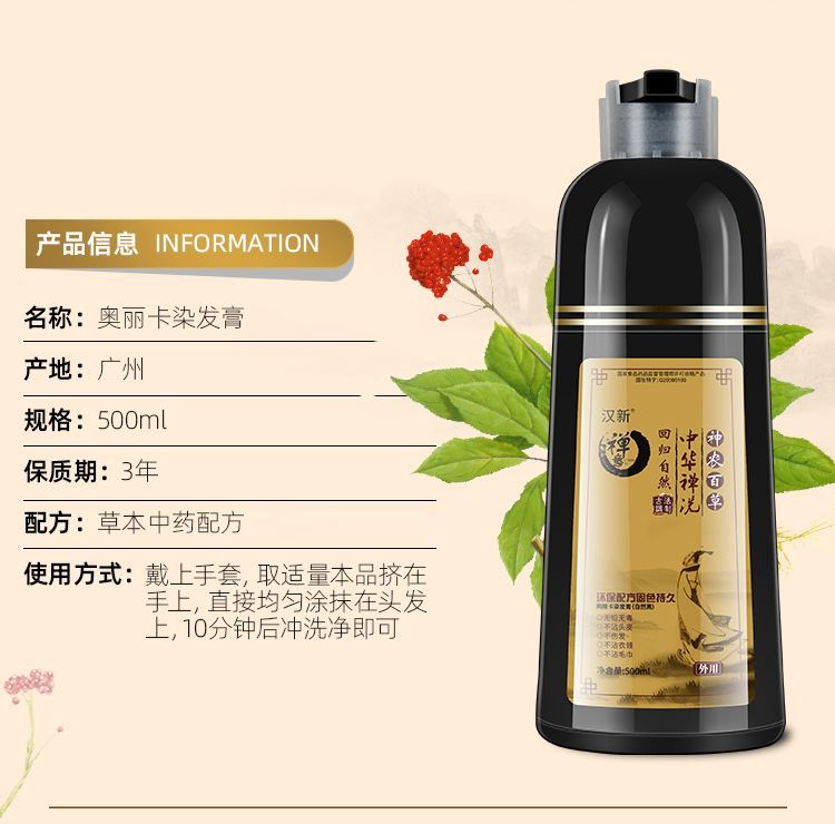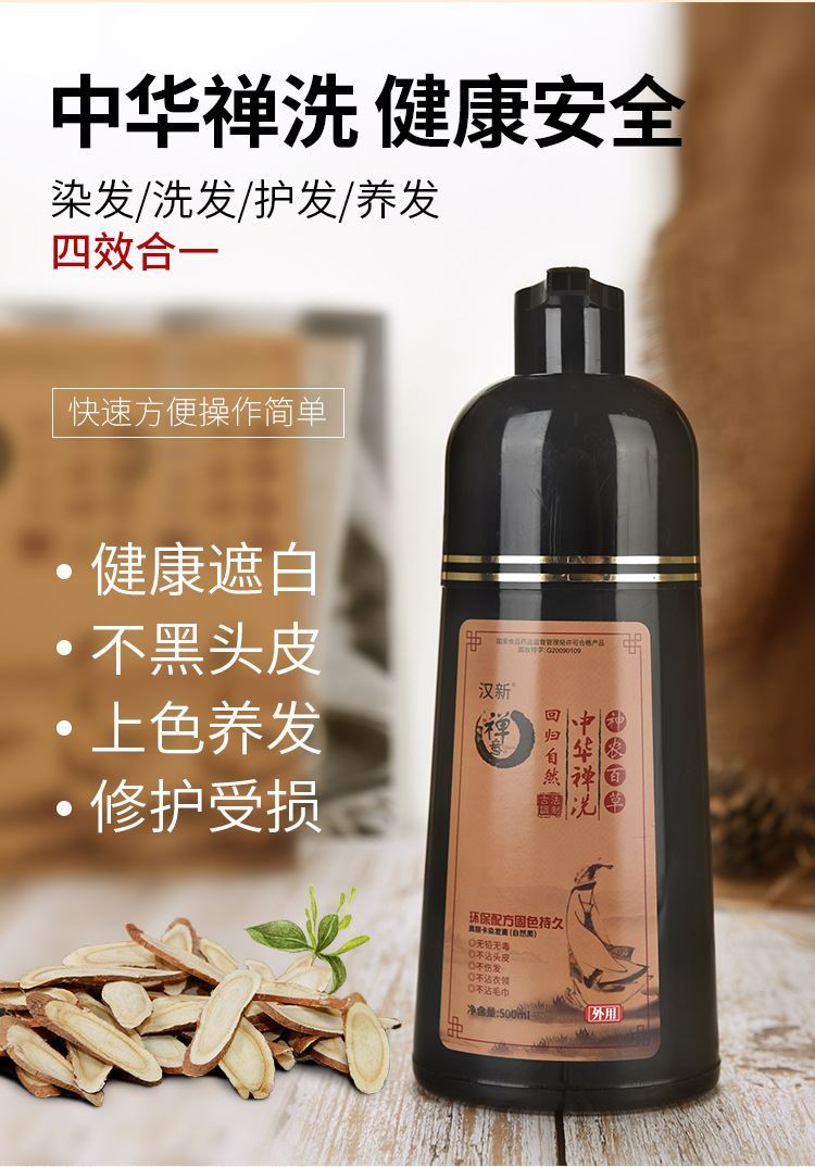 漢新禪意中華禪洗官網白發轉黑正品一洗黑植物洗發水染發劑
