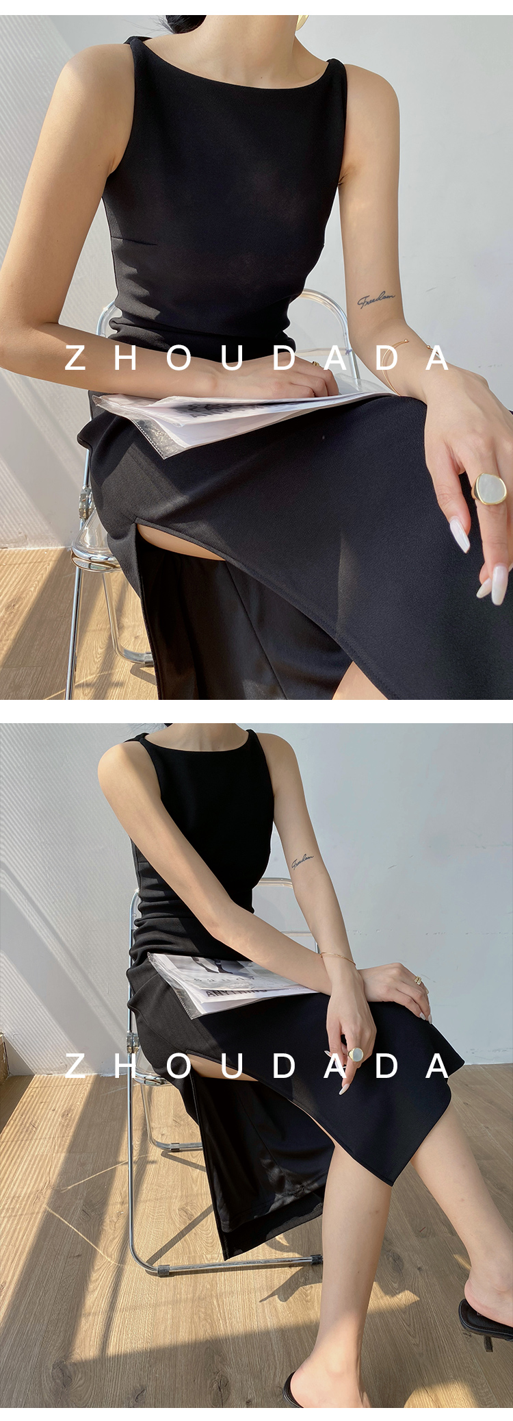 周大大工作室◆白色氣質開叉無袖連衣裙女夏季法式修身高級感裙子