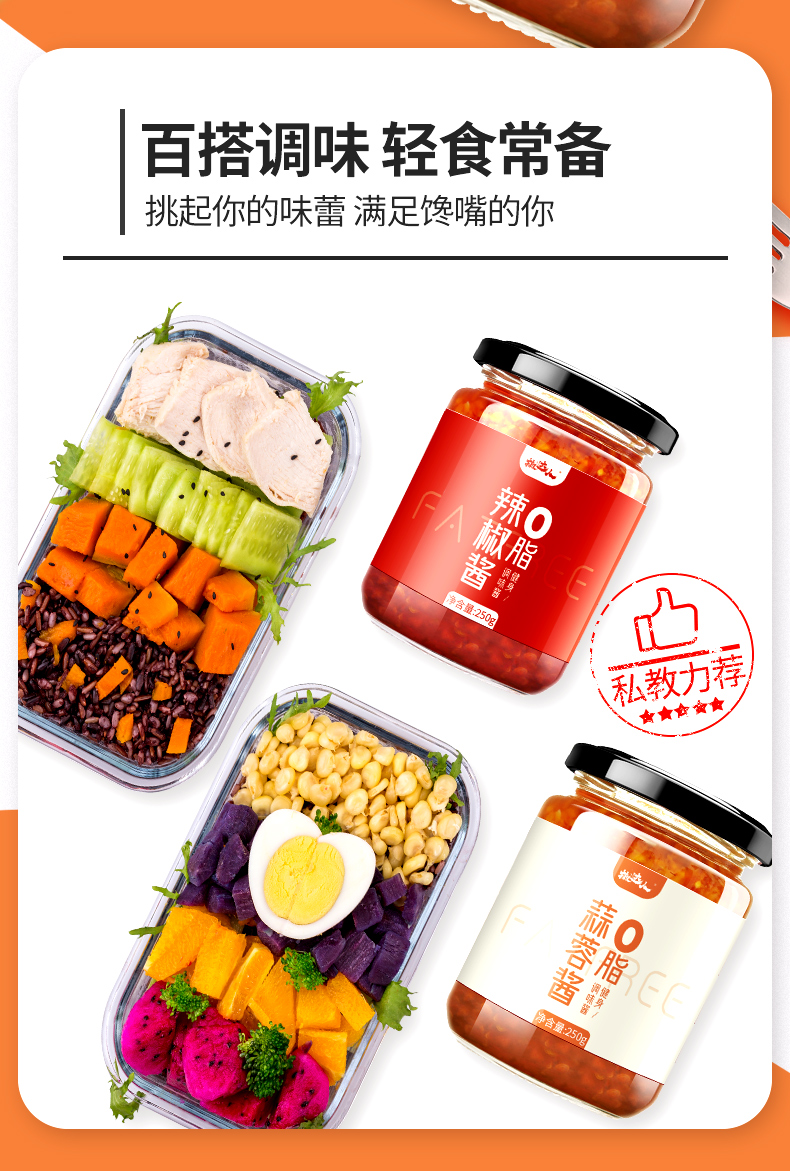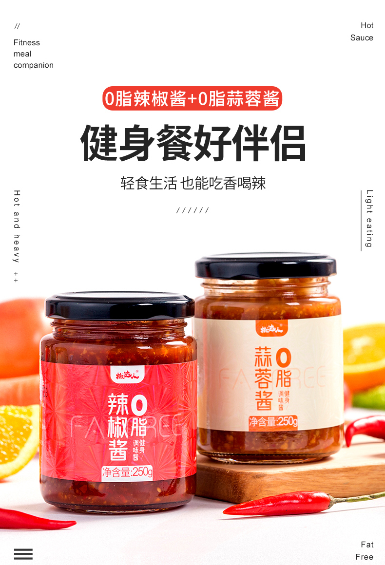 辣椒醬0脂肪蒜蓉醬減低脂醬料輕食包裝下拌飯零脂健身辣椒醬料