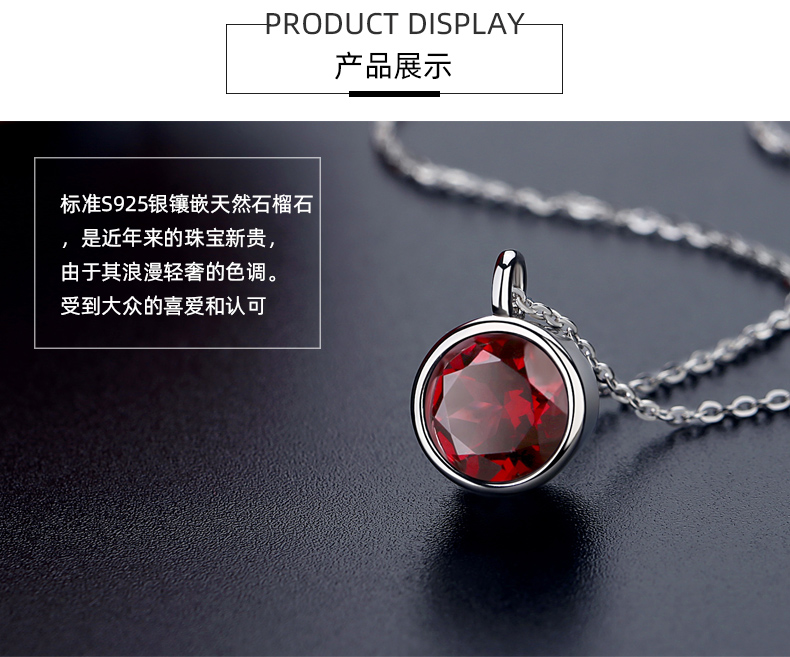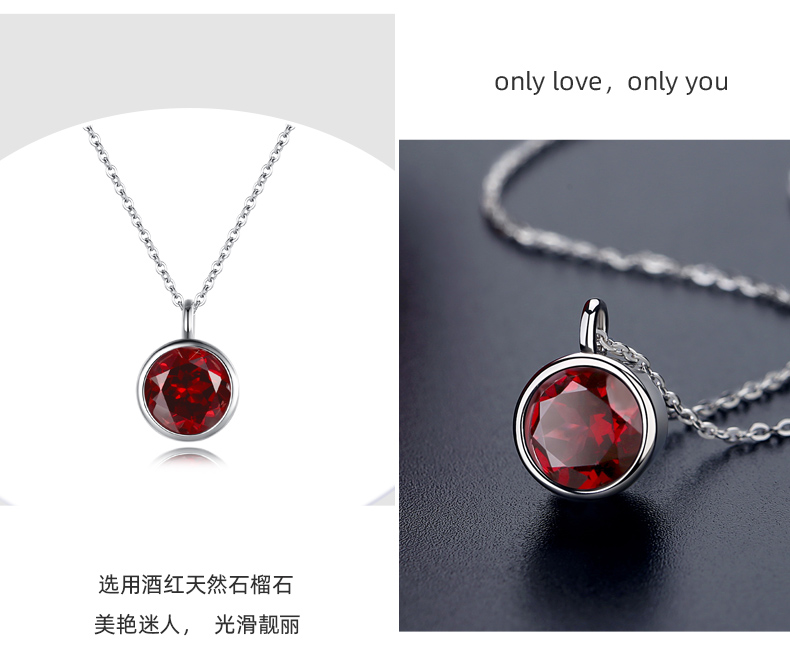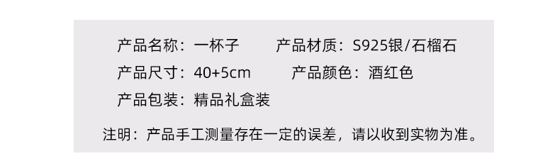 天然石榴石項鏈女純銀杯子鎖骨鏈吊墜一輩子輕奢小眾情人節禮物