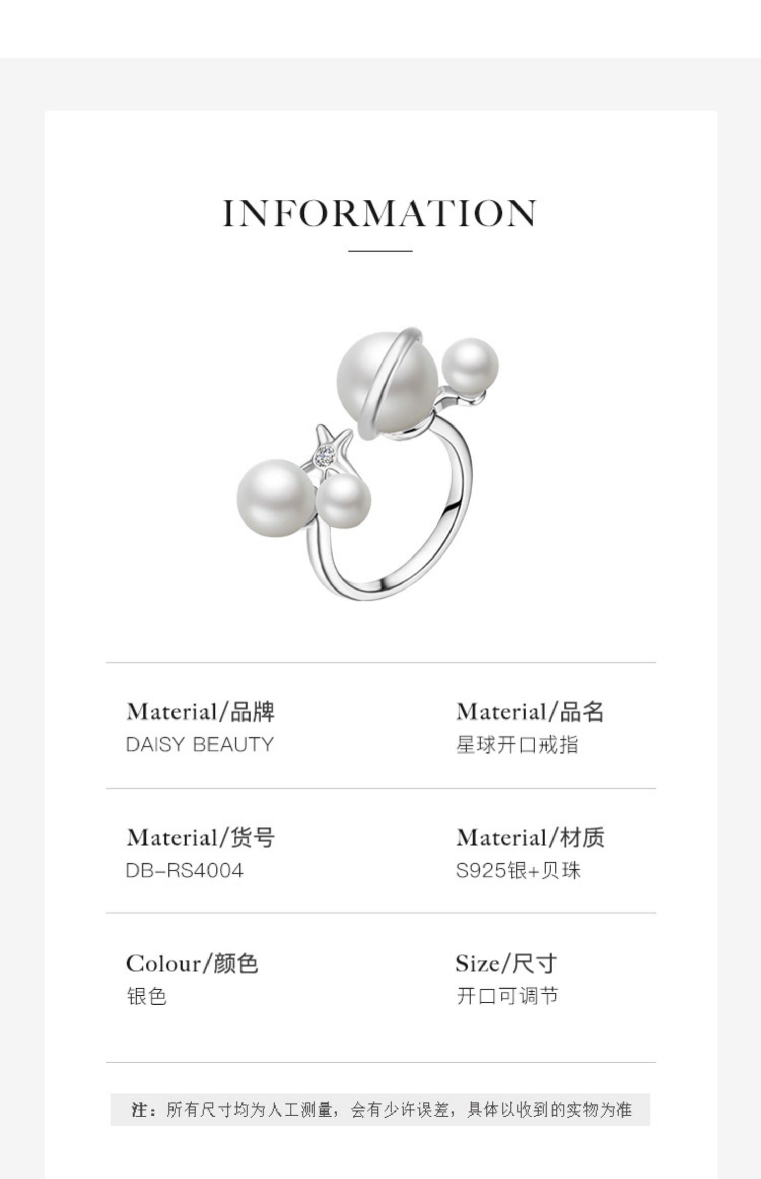 【明星同款】DAISY BEAUTY星球開口銀戒指女小眾設計食指尾戒子