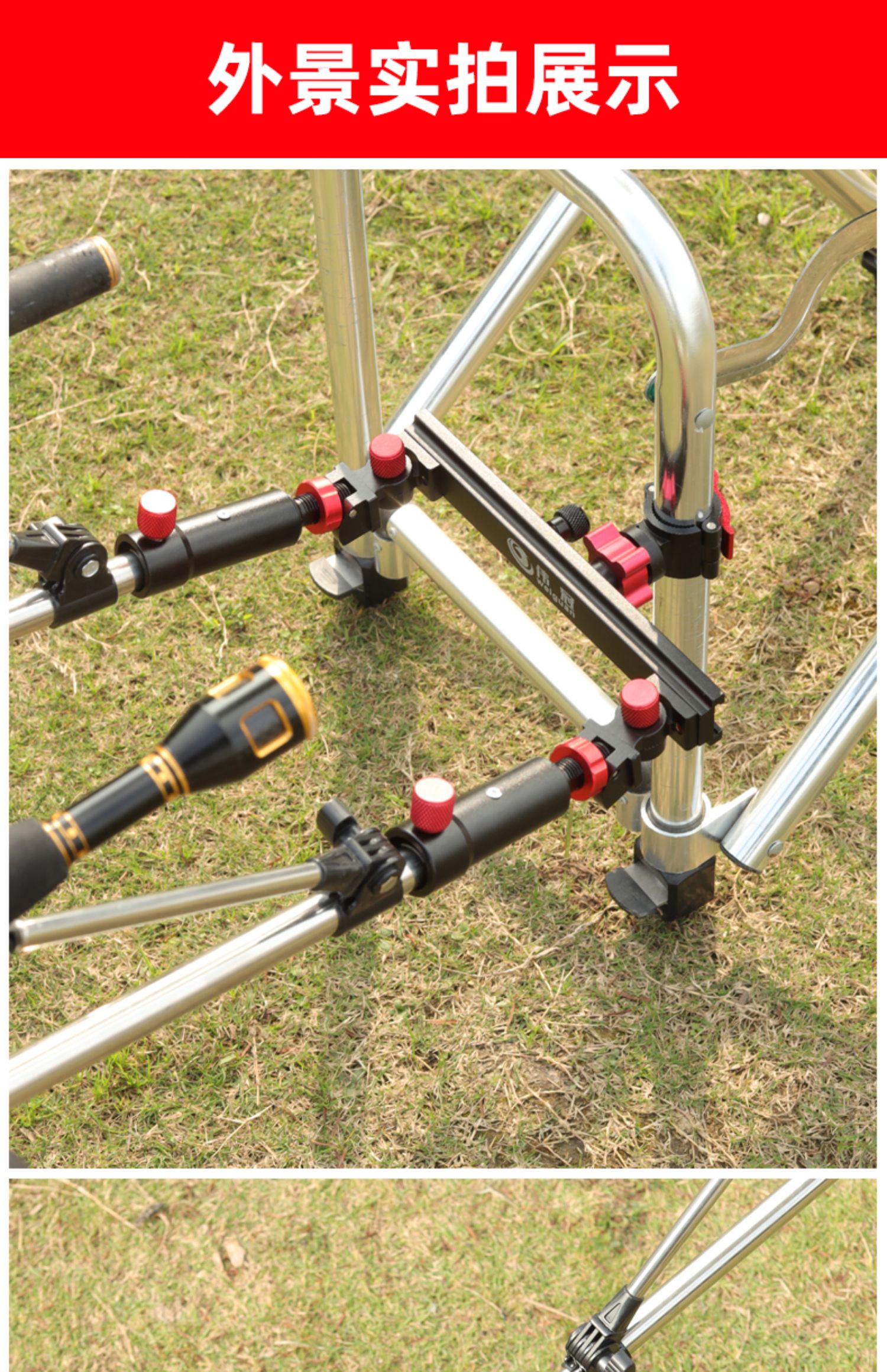 新款釣箱釣椅兩用雙炮臺架萬向炮臺座雙竿架桿通用釣箱椅配件漁具