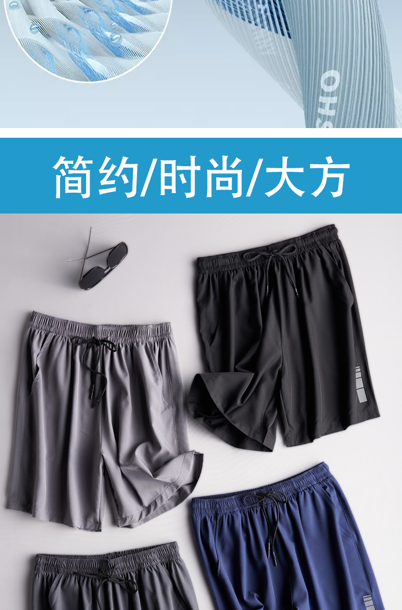 運動冰絲短褲男夏季薄款速干外穿寬松五分褲潮流休閑跑步籃球褲