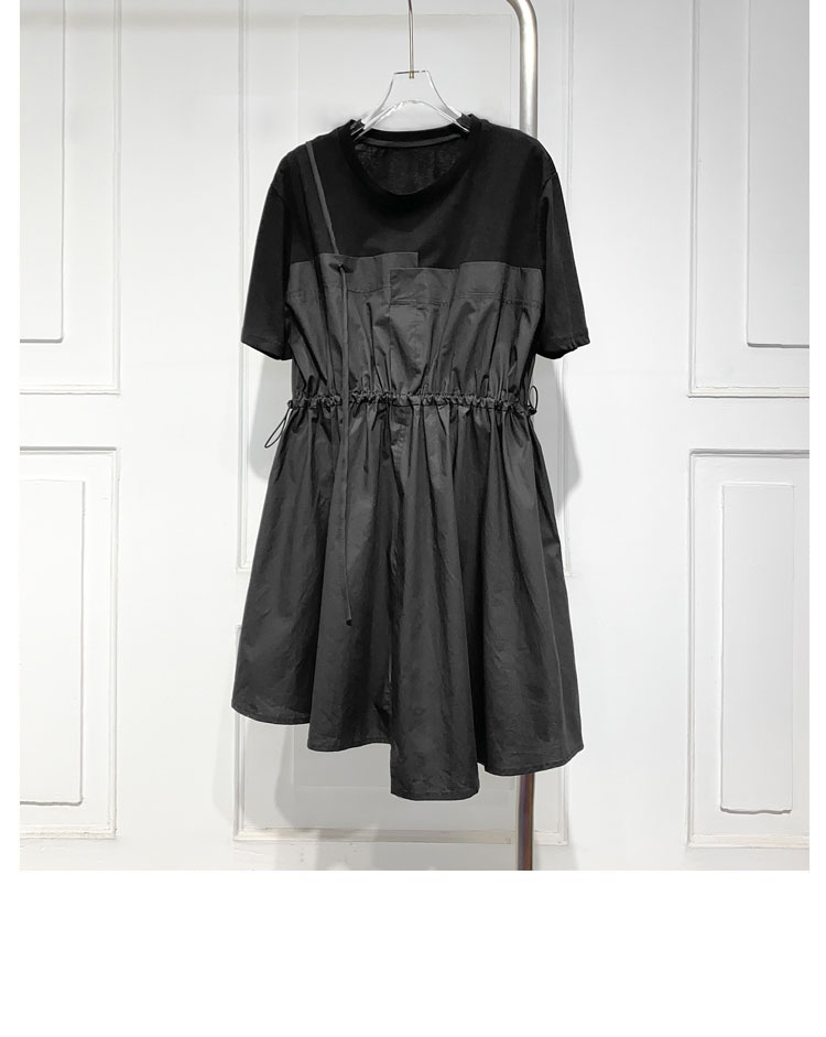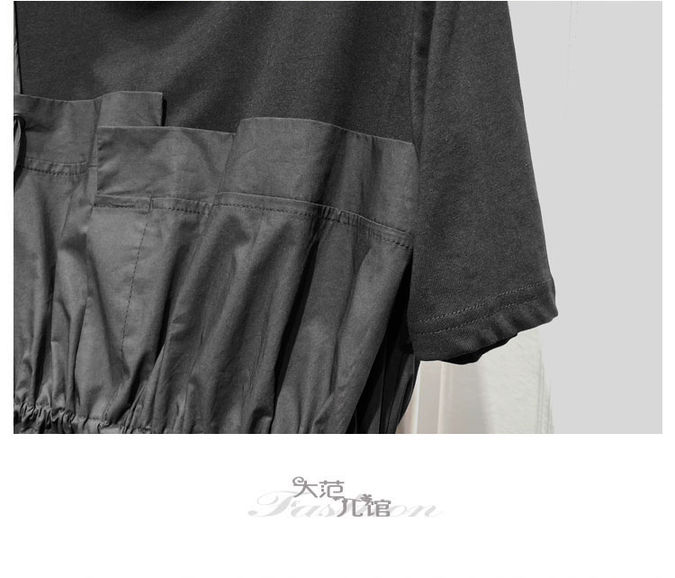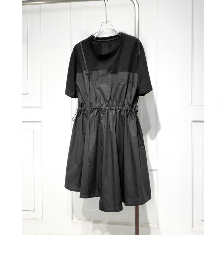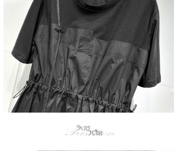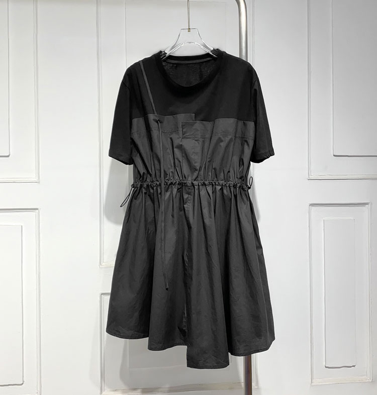 不規則假兩件拼接收腰顯瘦連衣裙女春夏新款減齡洋氣黑色中長裙潮