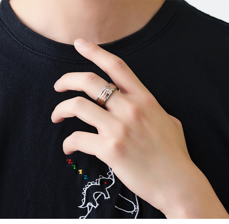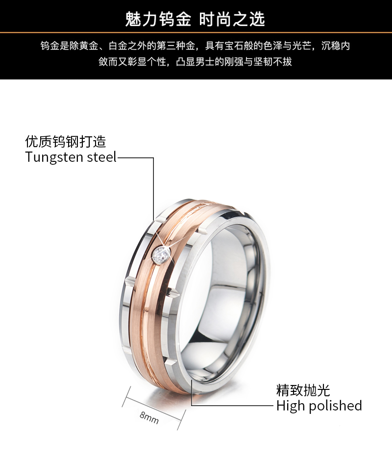 鎢金單身霸氣韓版男士磚石抖音指環