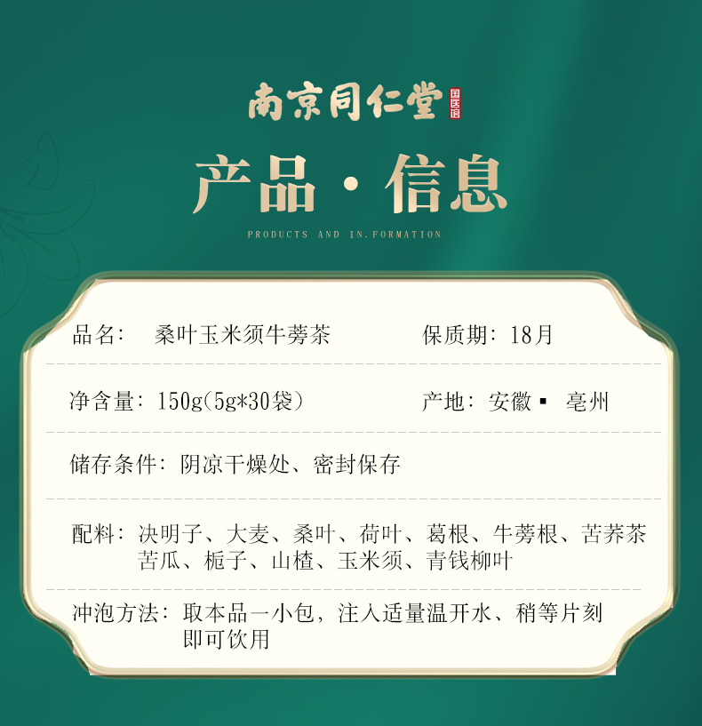 南京同仁堂正品玉米須桑葉茶養生茶