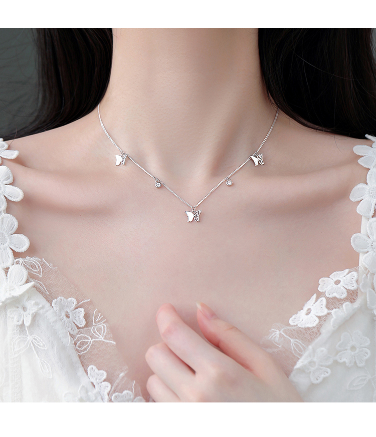 【巷南】925純銀蝴蝶女輕奢夏鎖骨鏈