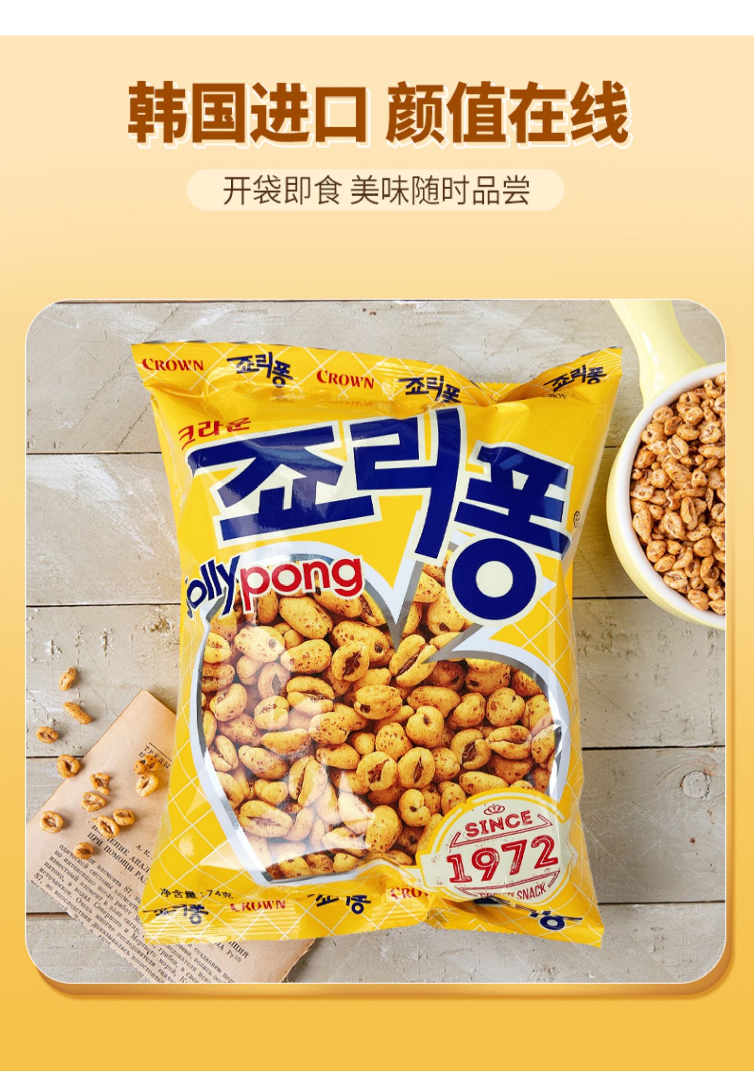 韓國進口crown克麗安大麥粒膨化甜點爆米花追劇休閑網紅零食小吃
