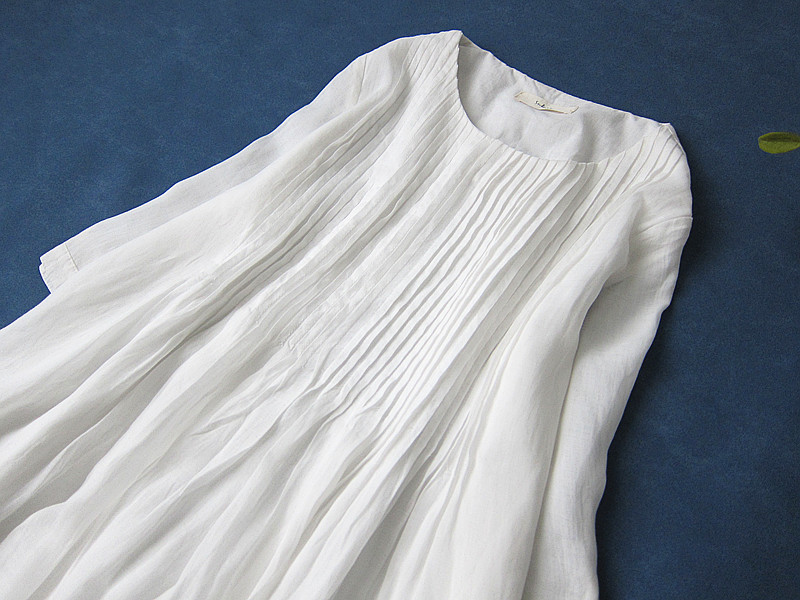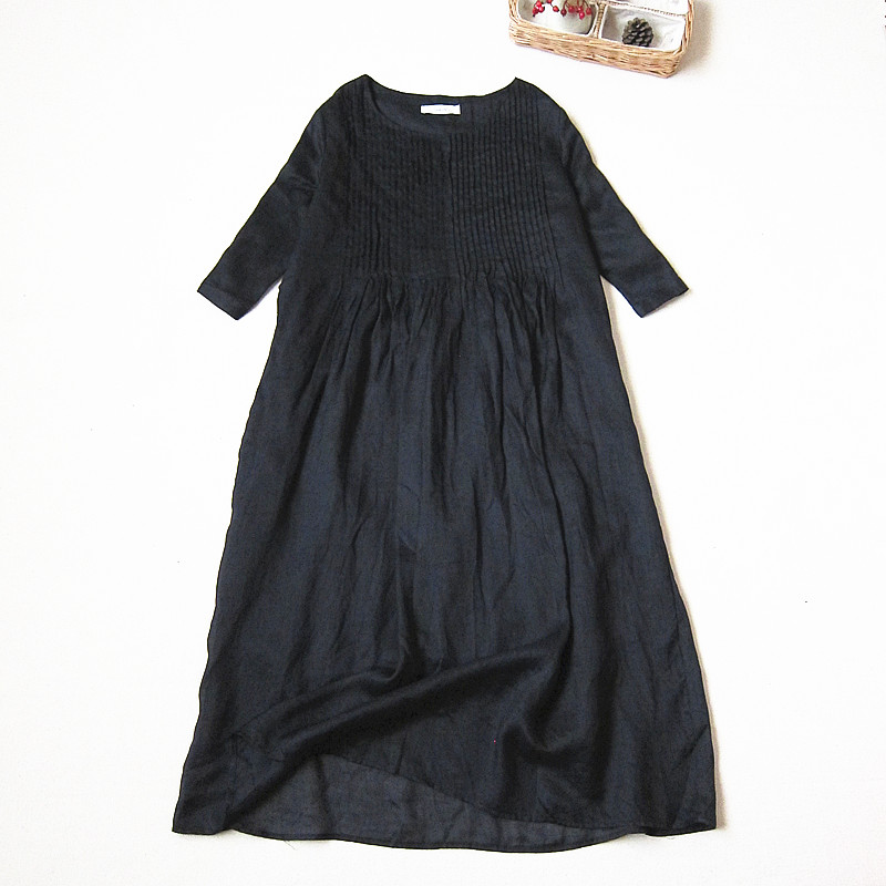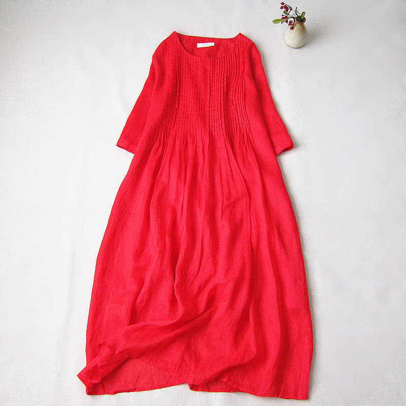 夏季款森系苧麻前后風琴褶連衣裙