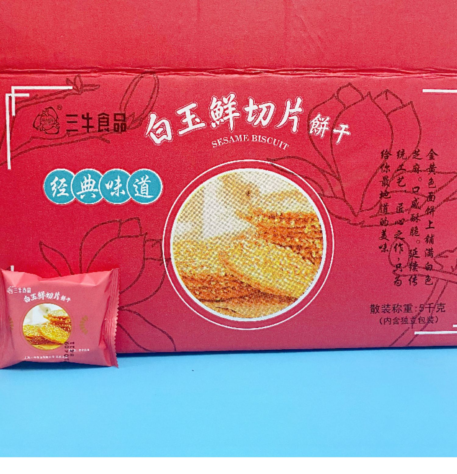 上海三牛白玉鮮切片薄脆芝麻餅干椰絲牛奶早餐休閑零食品獨立小包