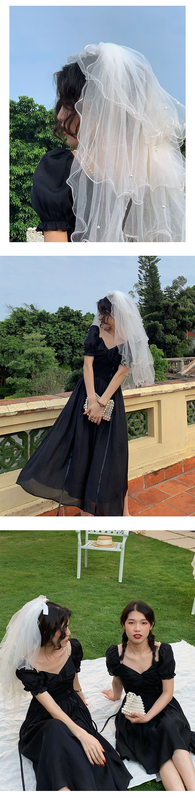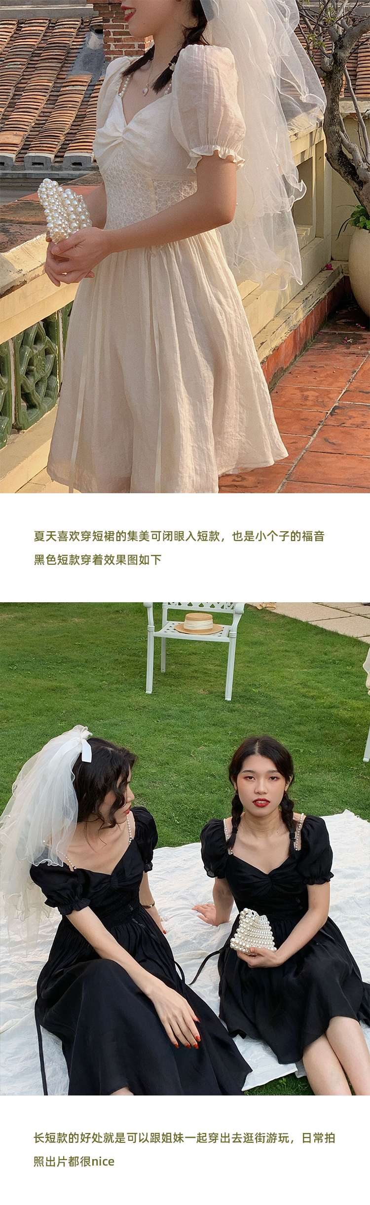 三個裁縫 花期少女 法式黑色連衣裙仙女小個子短裙氣質顯瘦夏天